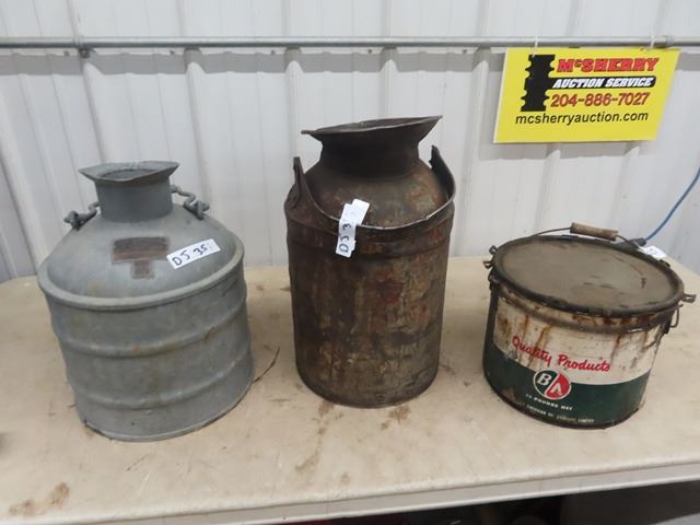3 Oil Pails 1) Legal Measuring BA 5 Gal 1) BA 25LB Grease 1) 5 GAL