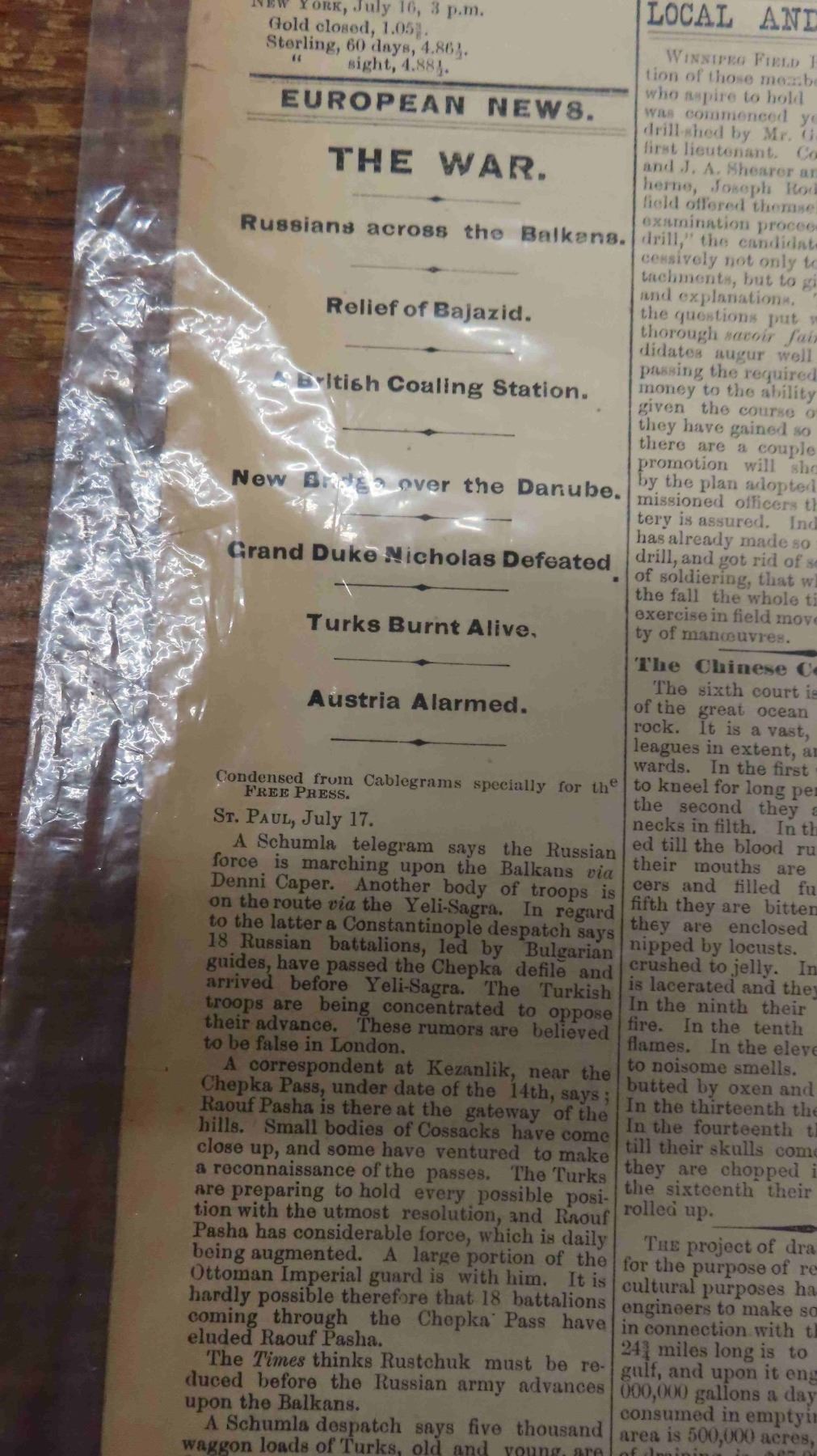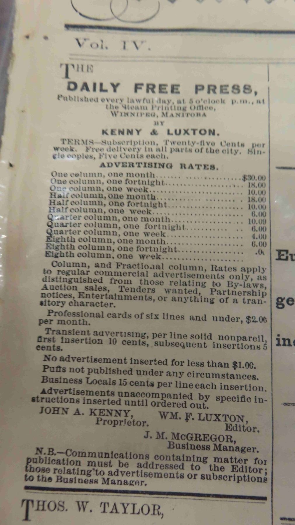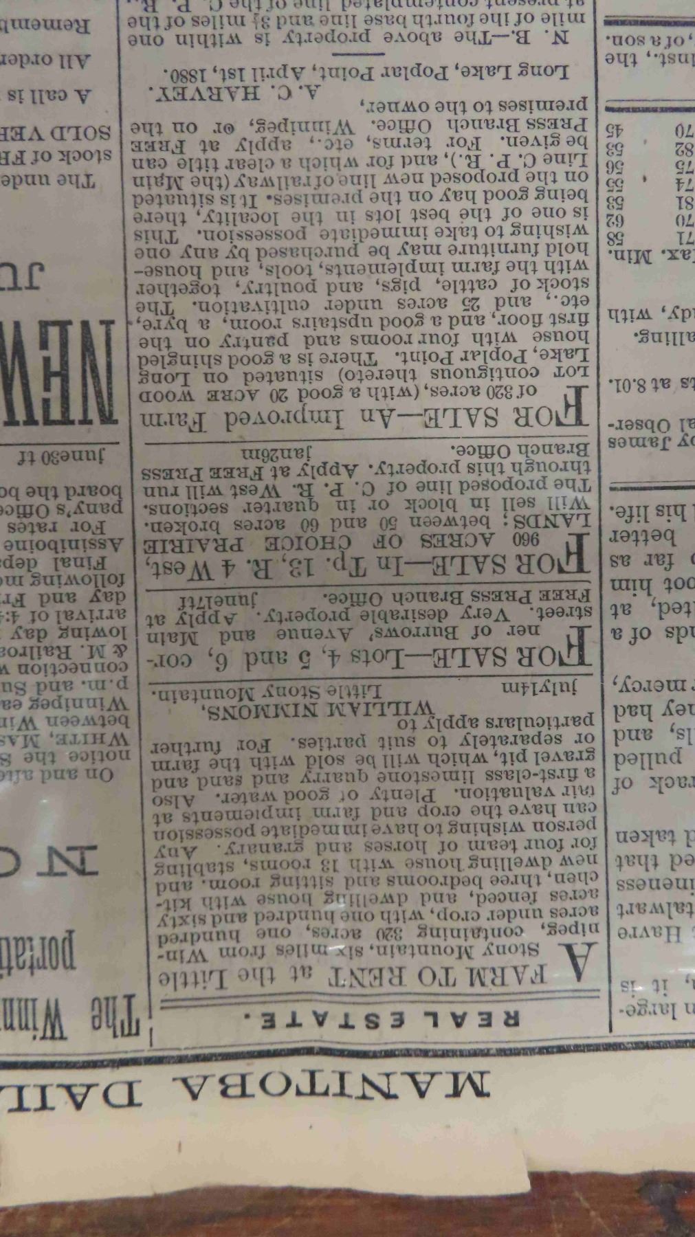 3 Original 1877 + 1880 Manitoba Free Press Newspapers with Many Interesting Articles