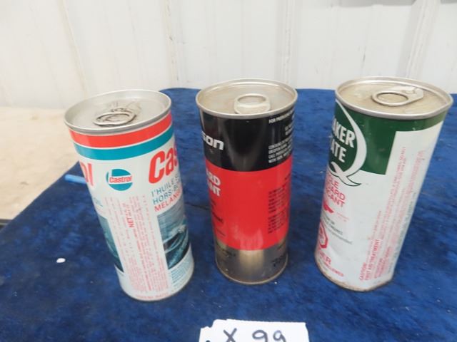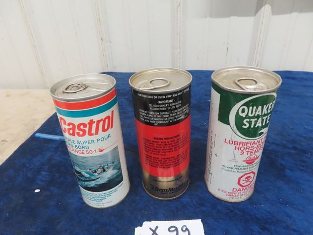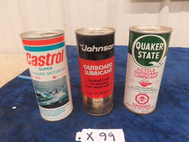 3 Outboard Motor Oil/Lubricant Tins all 16 oz 1) Quaker State, 1) Johnson, 1) Castrol with Product