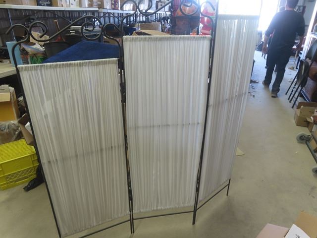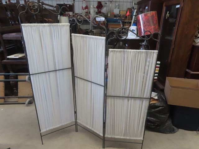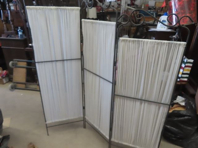 3 Panel Folding Room Divider - Wrought Iron + Cloth