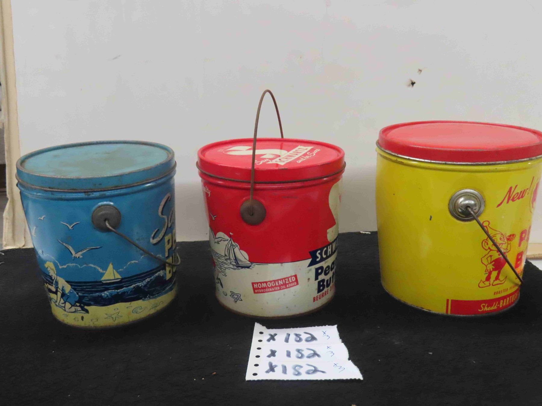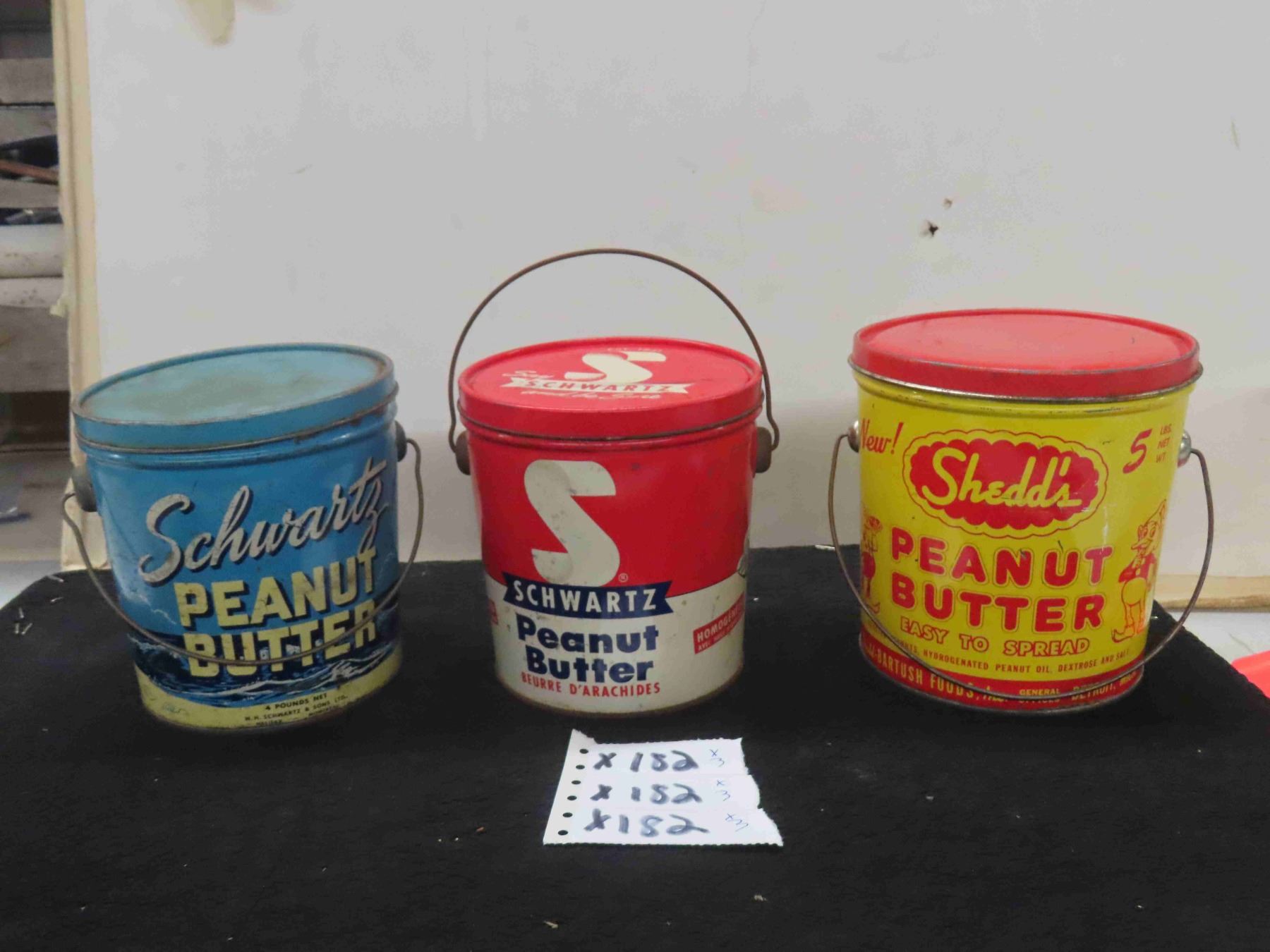 (3) Peanut Butter 5LBS Tins with Handles - (2) Schwartz & (1) Shedds