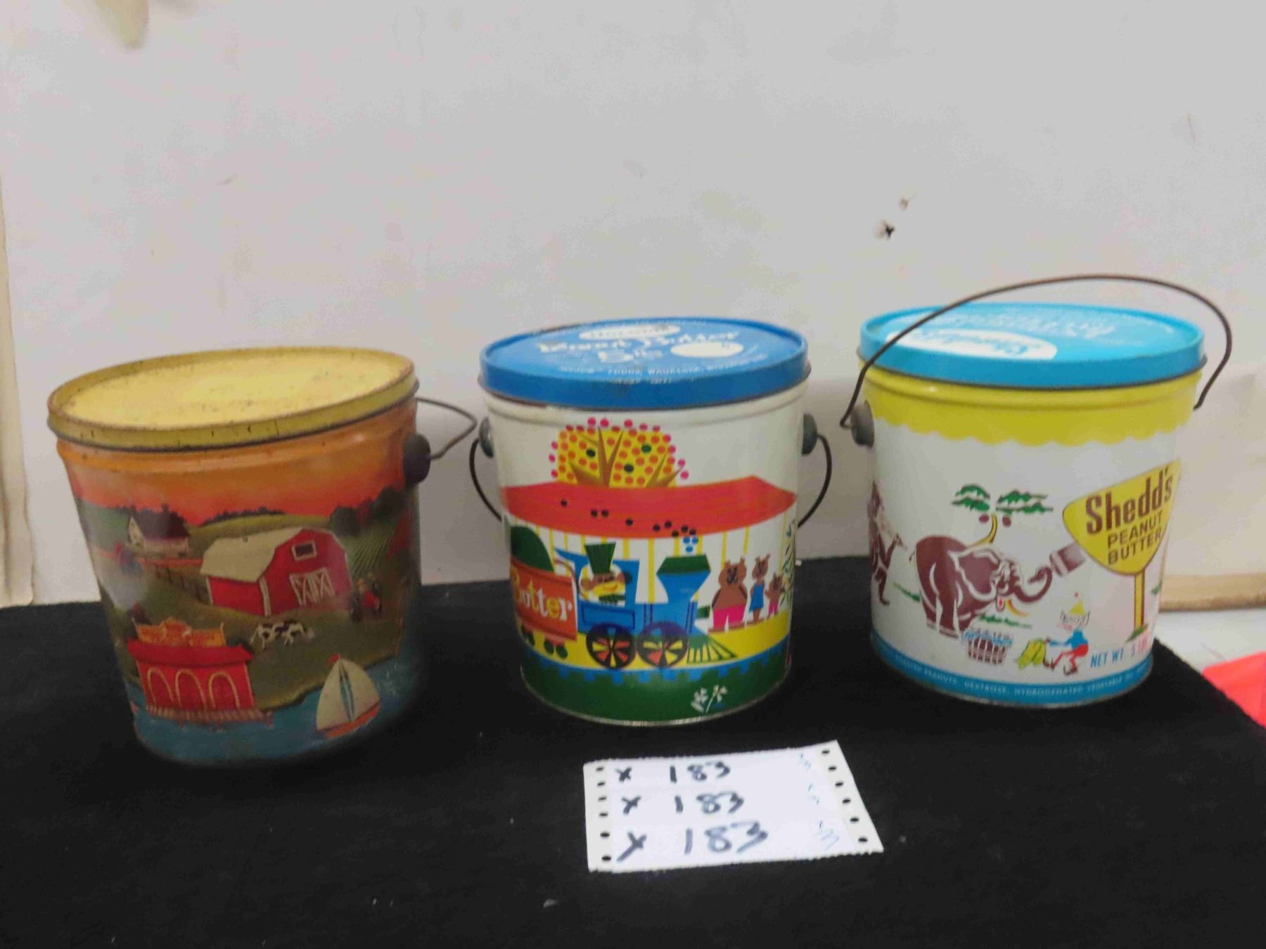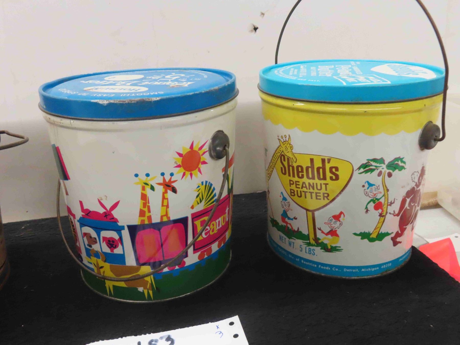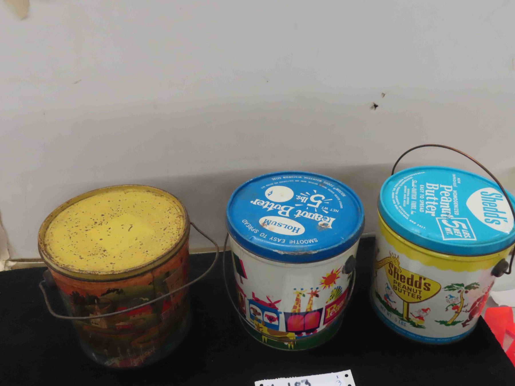 (3) Peanut Butter 5LBS Tins with Handles - Shedds , Holsum , Great Graffics