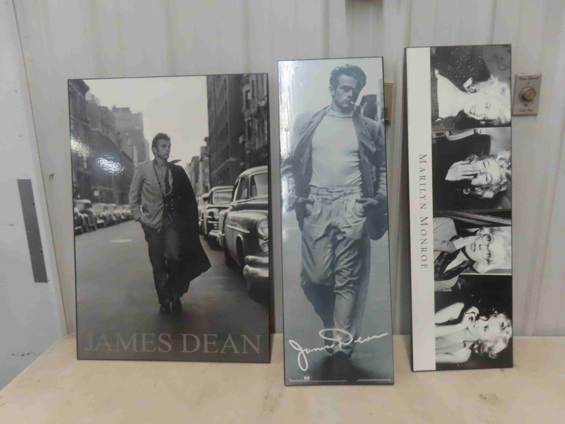 3 Photos on Hard Wood: 2 James Dean 11 1/2'' x 36'' + 24'' x 34'' , 1 Marilyn Monroe 11 1/2'' x 36''