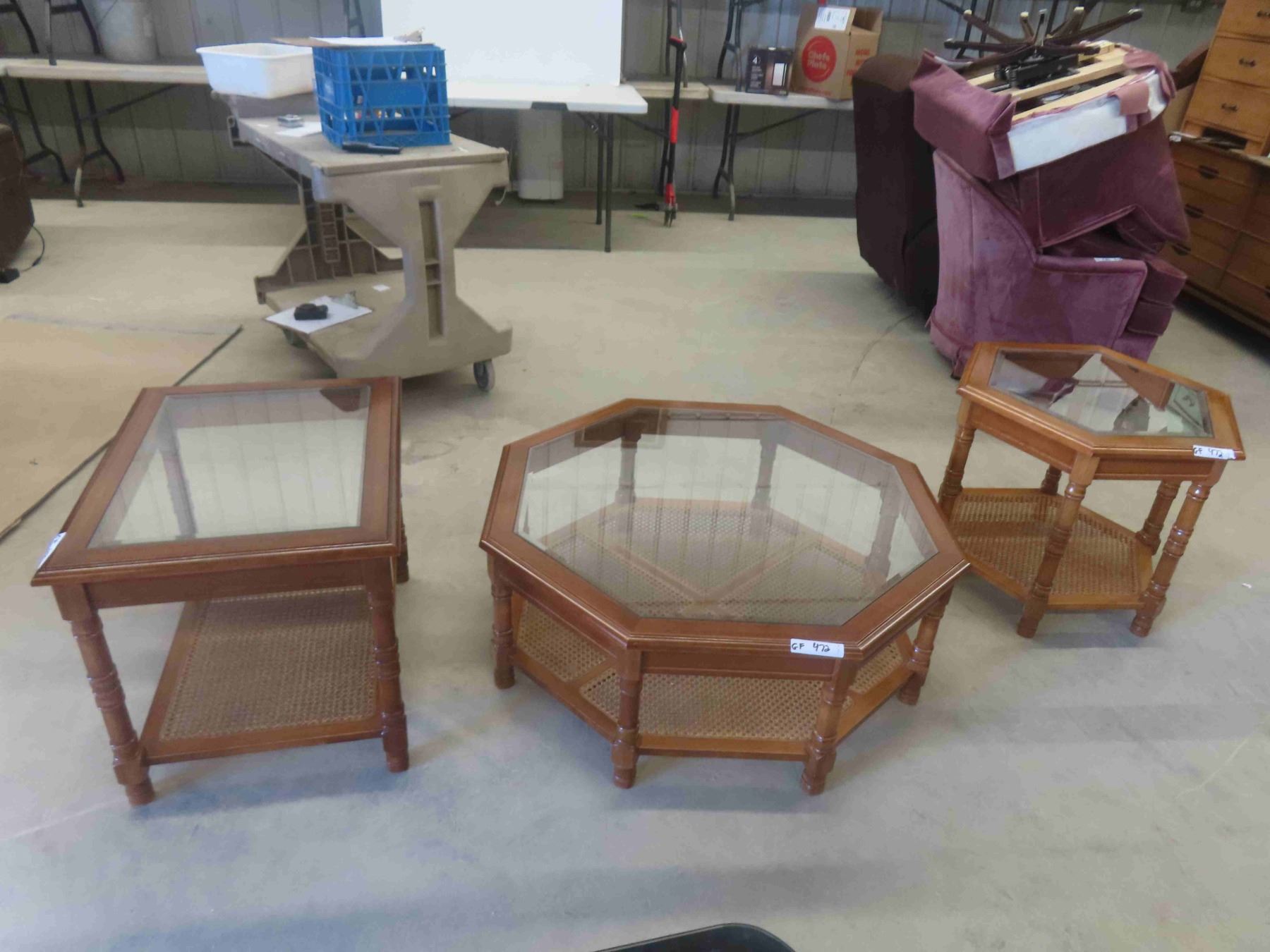 3 Piece Coffee Table Set: Coffee Table 14 1/2'' x 38'' Across , End Table 21'' x 21'' x 26 1/2'' , End Table 21'' x 24''