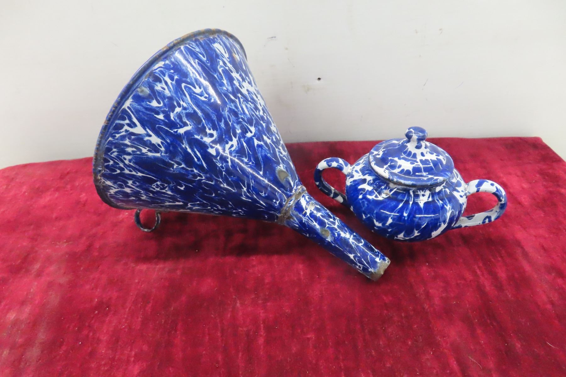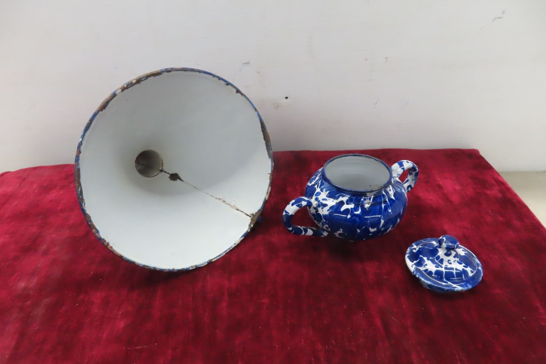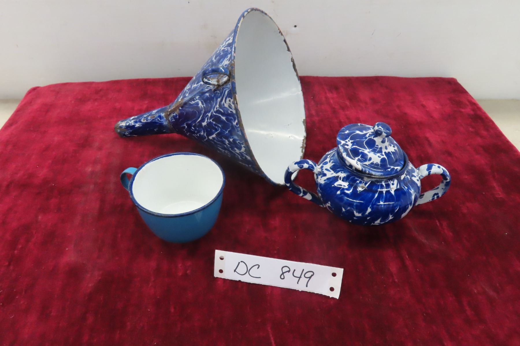 3 Pieces Enamel Ware Funnel Sugar Bowl with Lid and Coffee Mug