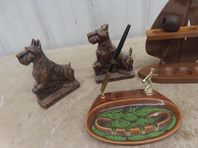 3 Pipes with Pipe Stand, Ashtray, Scotty Dog Book Ends plus more