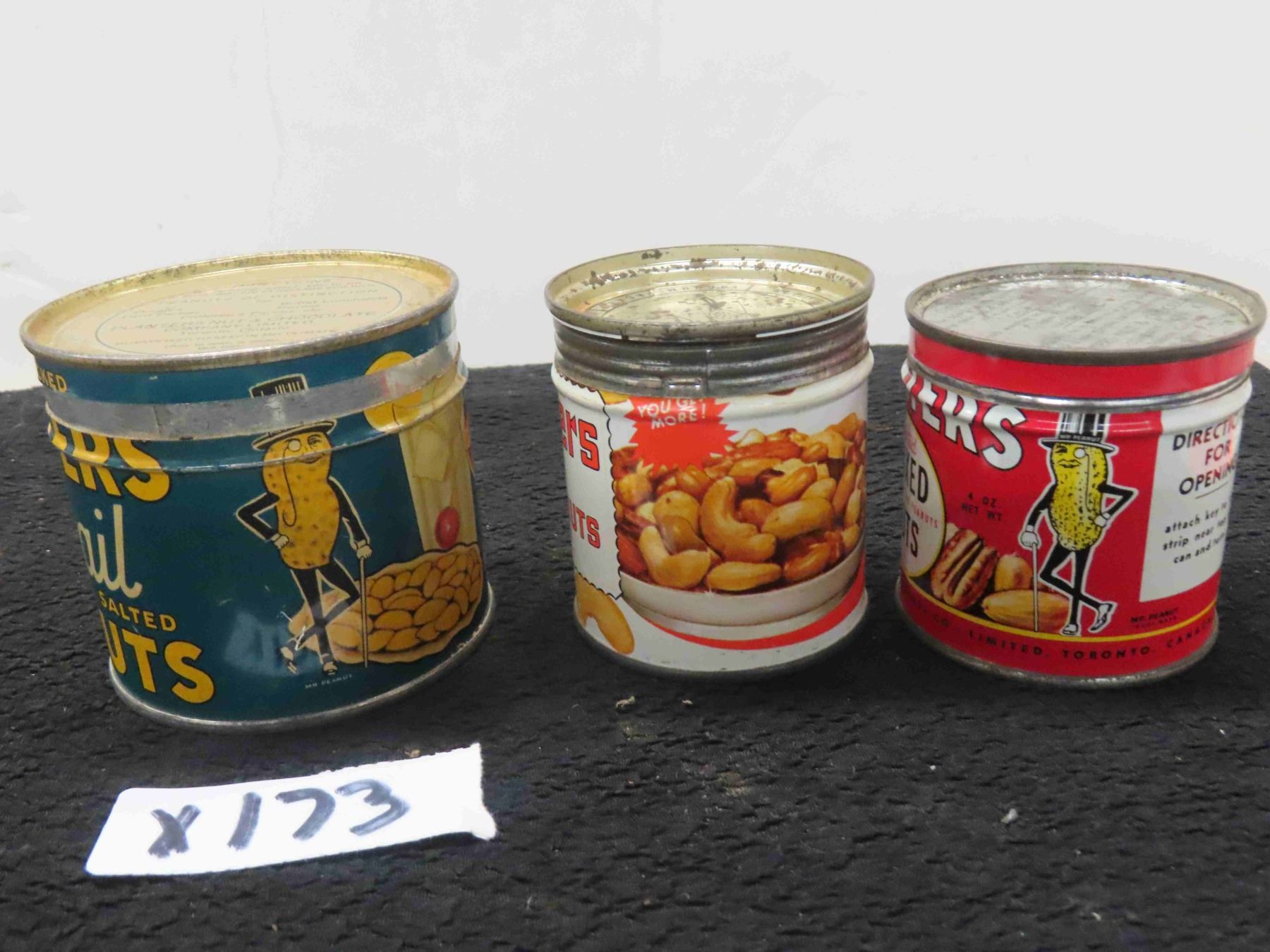 (3) Planters Peanuts Tins (1) 8OZ & (2) 4OZ