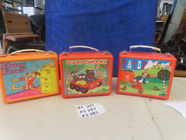 3 Plastic Lunch Kits; 1) Kong Fooey 1975 - Thermos 1) Kooky Canooky 1970 - Thermos, 1) Patof - 1975 - Thermos