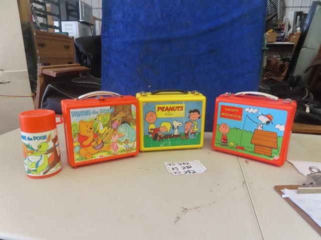 3 Plastic Lunch Kits; 1) Winnie the Pooh with Thermos - Aladdin, 1) Peanuts 1950,1954, 1959,1) Snoop
