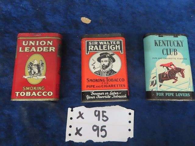 3 Pocket Tobacco Tins 1) Union Leader 1) Sir Walter Raliegh 1) Kentucky Club