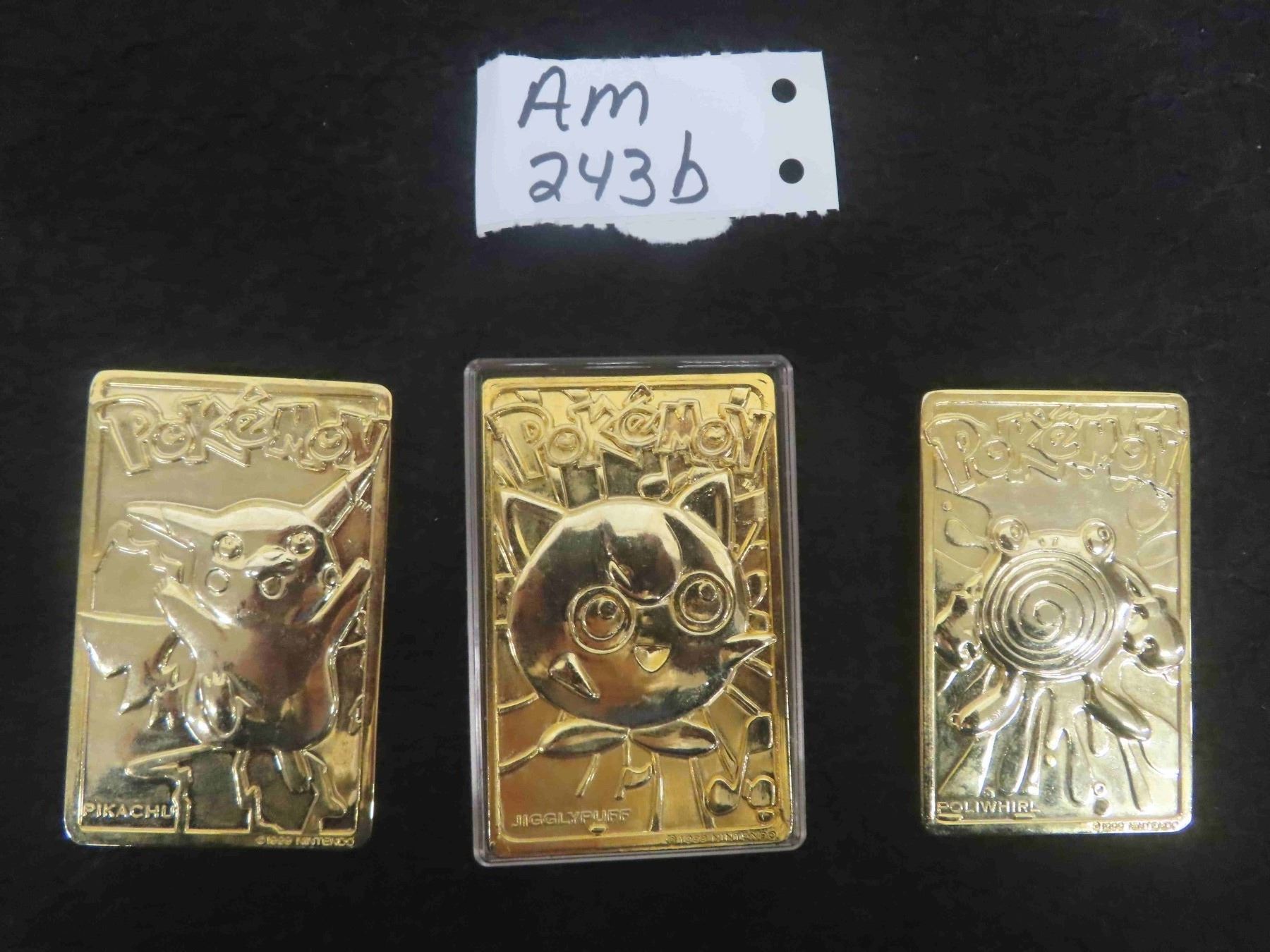 3 Pokémon Gold Plated Collector Pikachu, Jigglypuff, Poliwhirl