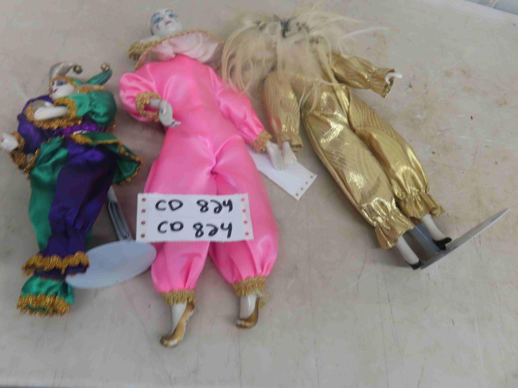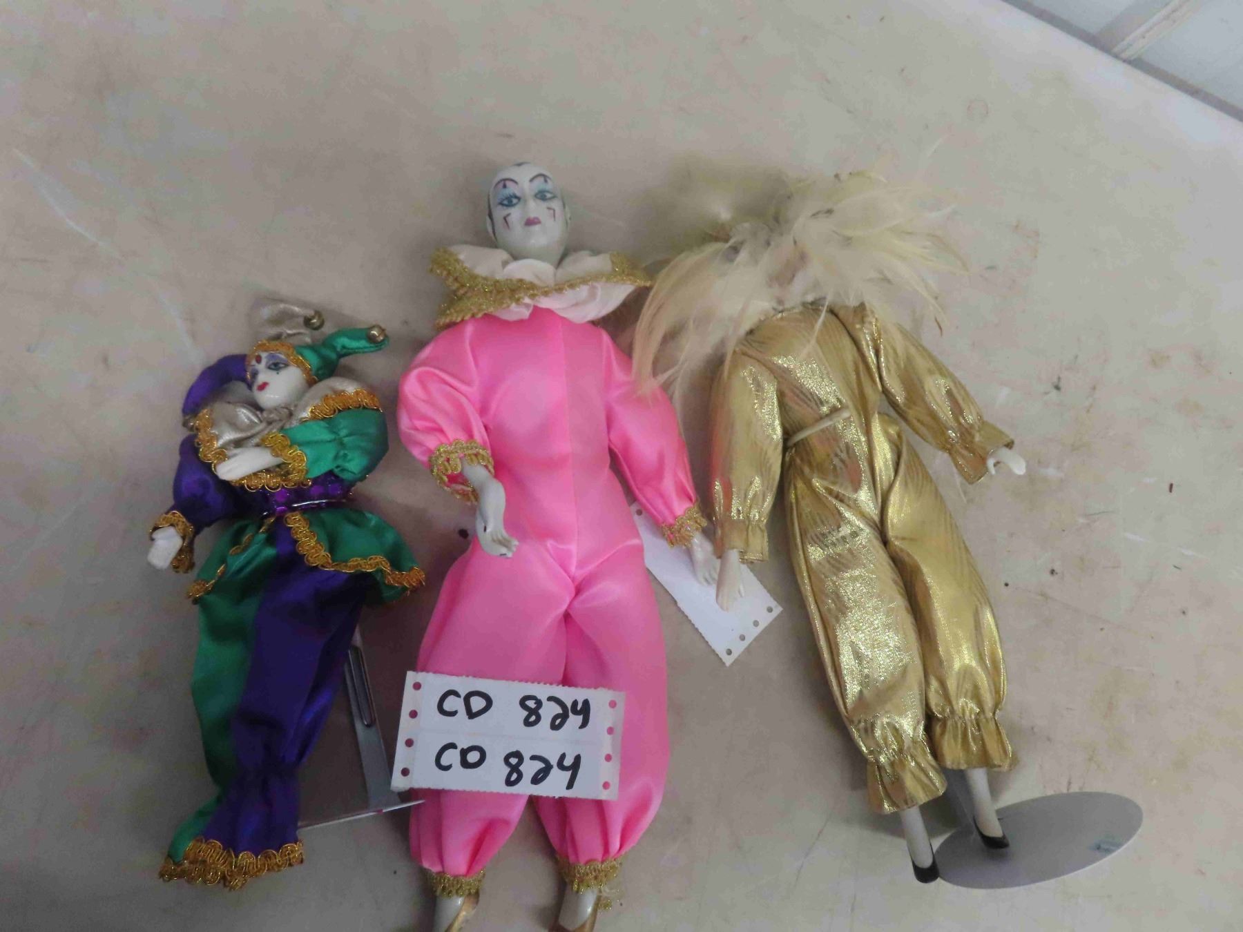 3 Porcelain Clown Dolls or Mime 9" to 16"