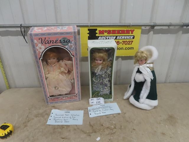 3 Porcelain Dolls ; Vanessa with Box, Century with Box & 1 More - No Box
