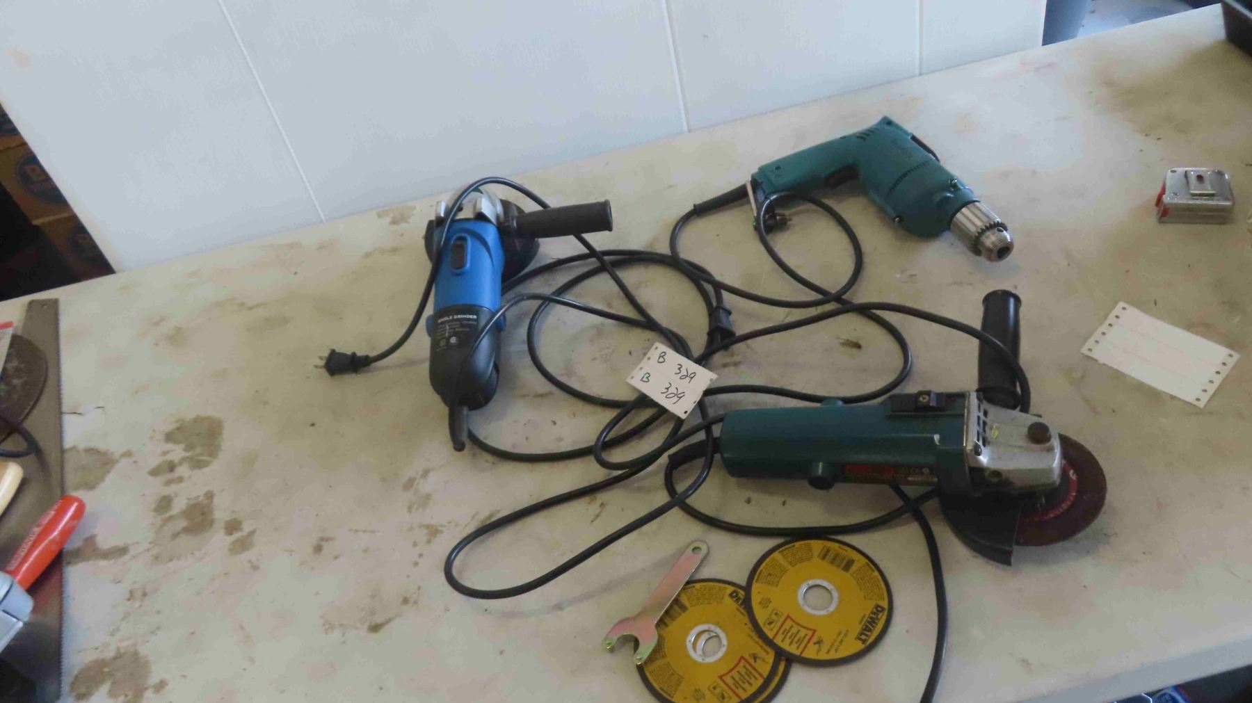 3 Power Tools: 2 Angle Grinders, 1 Drill