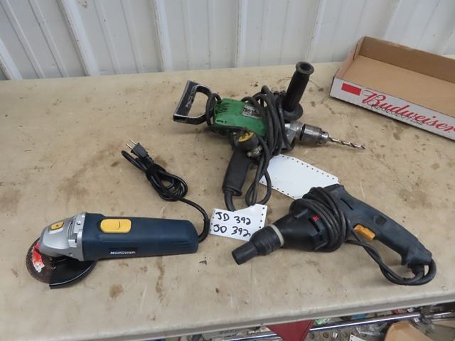 3 Power Tools - Bosch Drywall Gun, Mastercraft Angle Grinder, & Hitachi Drill