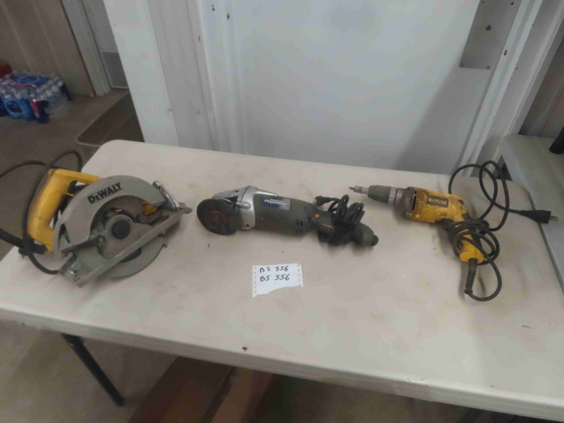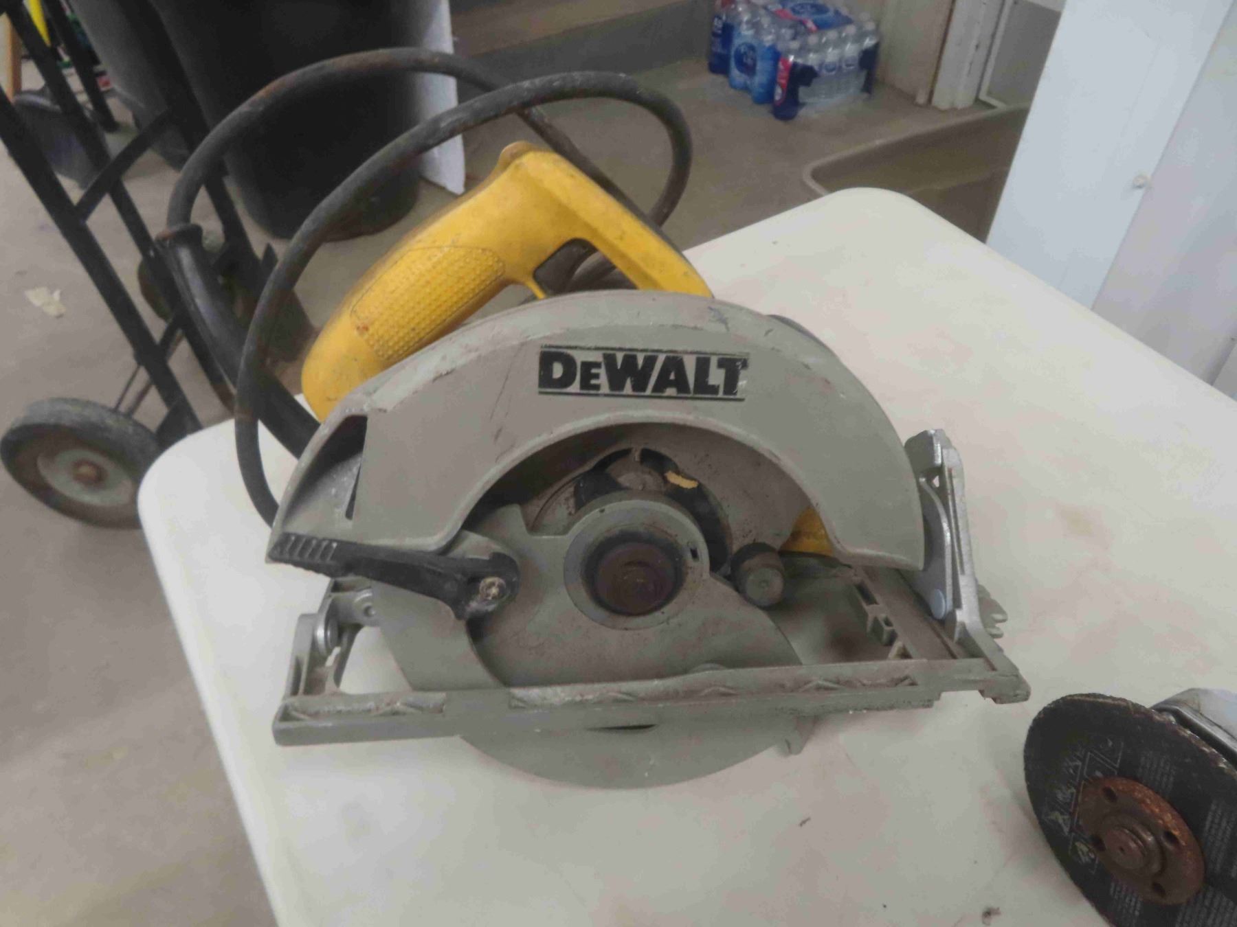 3 Power Tools ; DeWalt Drywall Gun, DeWalt Circular Saw, Mastercraft Maximum Angle Grinder - tested, works