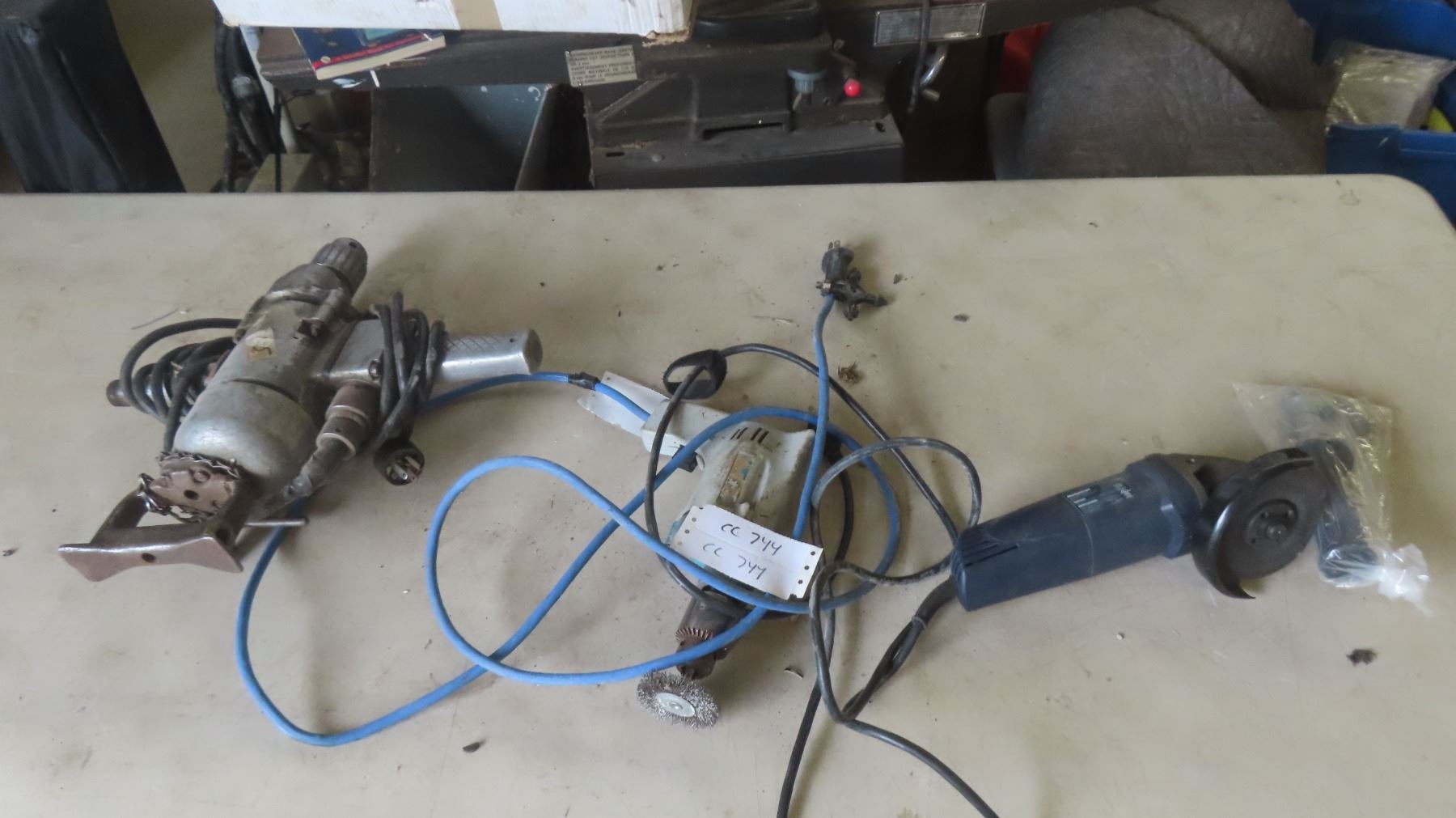 3 Power Tools: Mastercraft 4 1/2'' Angle Grinder, 3/8'' Drill, 1/2'' Drill