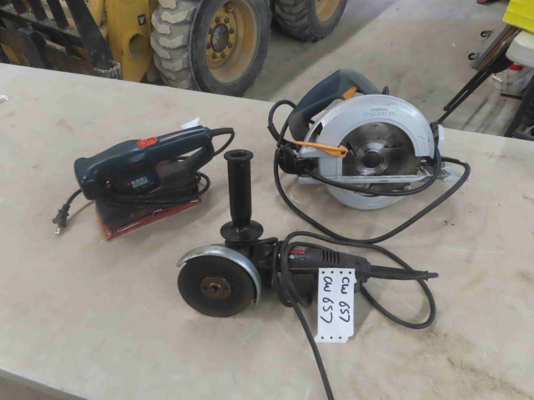 3 Power Tools ; Mastercraft Circular Saw, B+D Sander, B+D Angle Grinder