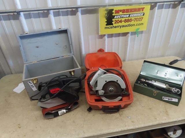 3 Power Tools all w Case - Craftsman Belt Sander, Skil Circ Saw, & Shopmate 1/4" Drill