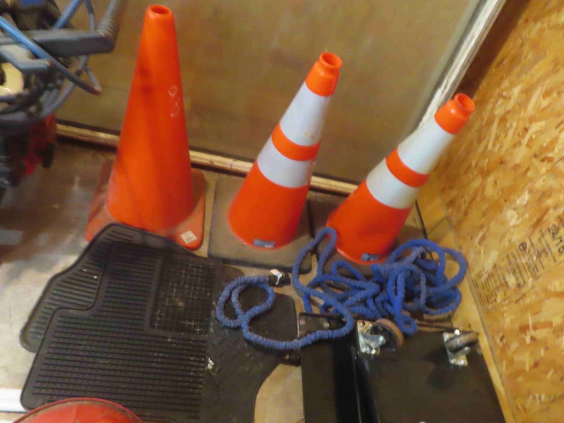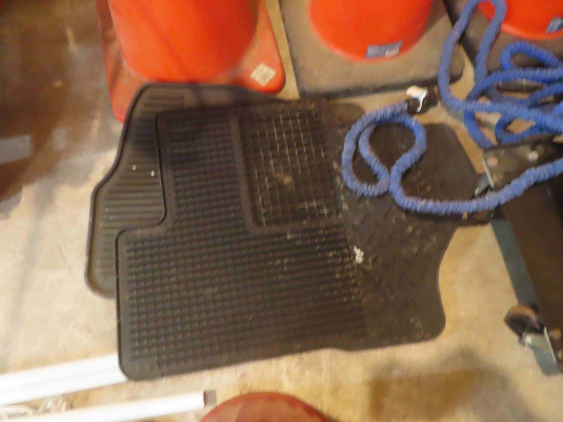 3 Pylons , 2 Floor Mats, Garden Hose
