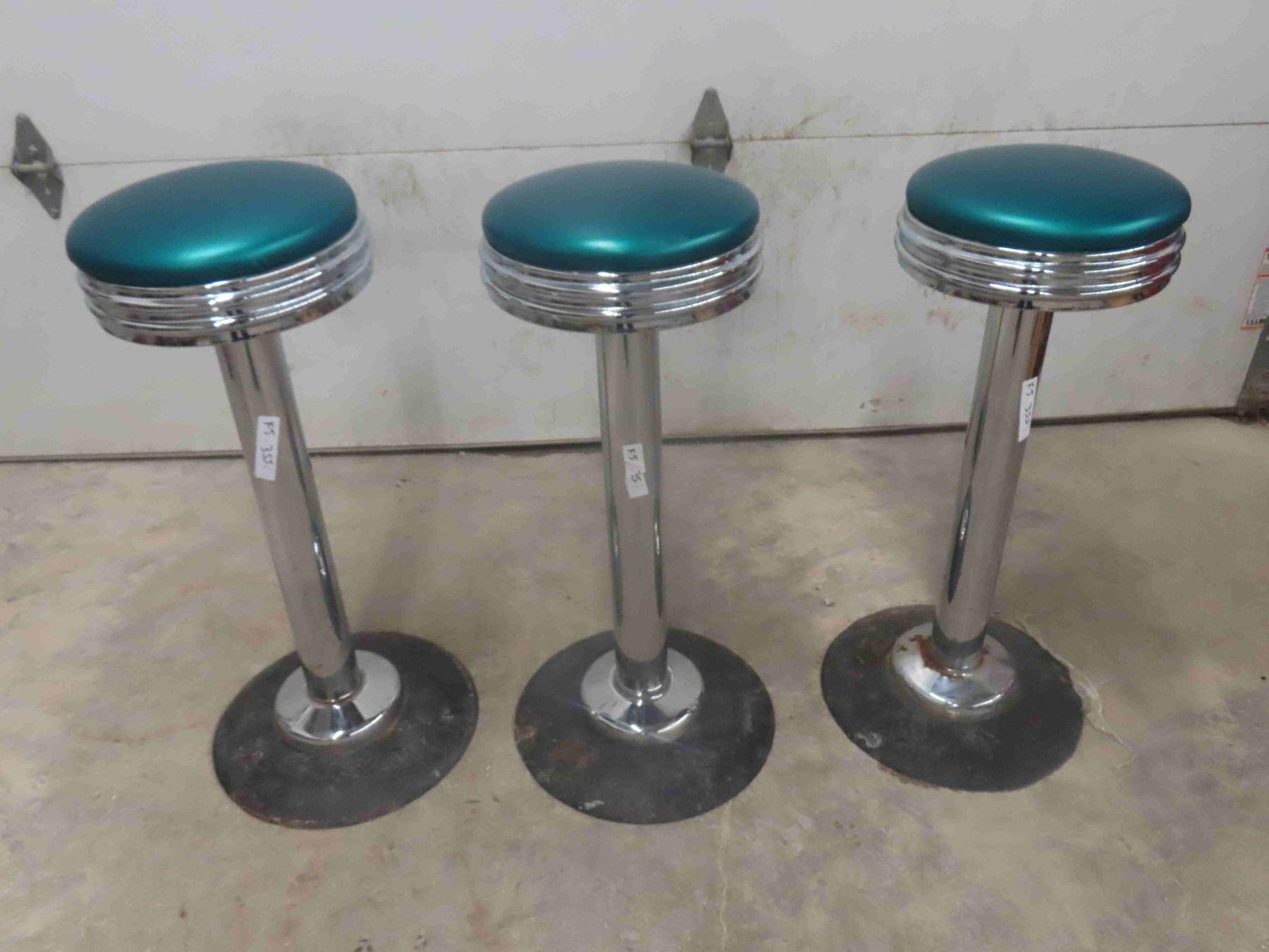 3 Retro Swivel Café Stools - self Standing 32" Tall, 12" Wide Seat