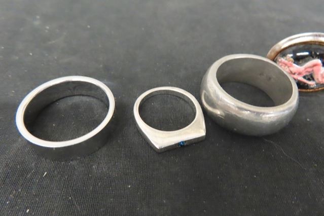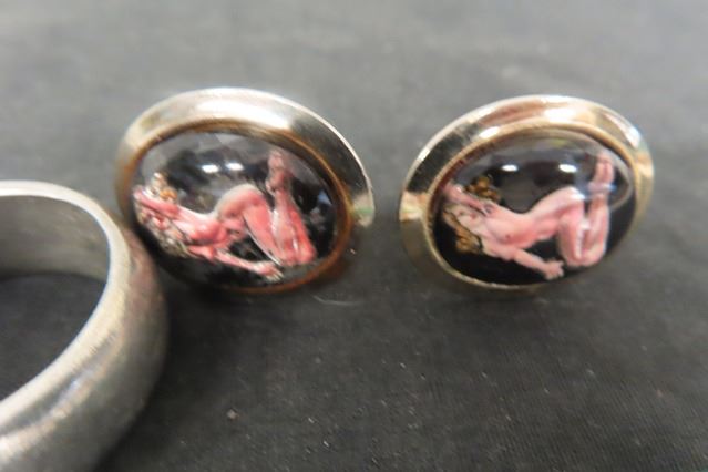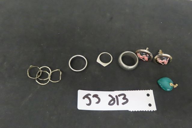 3 Rings , 2 Risque Cuff Links ; Heart + Pendant