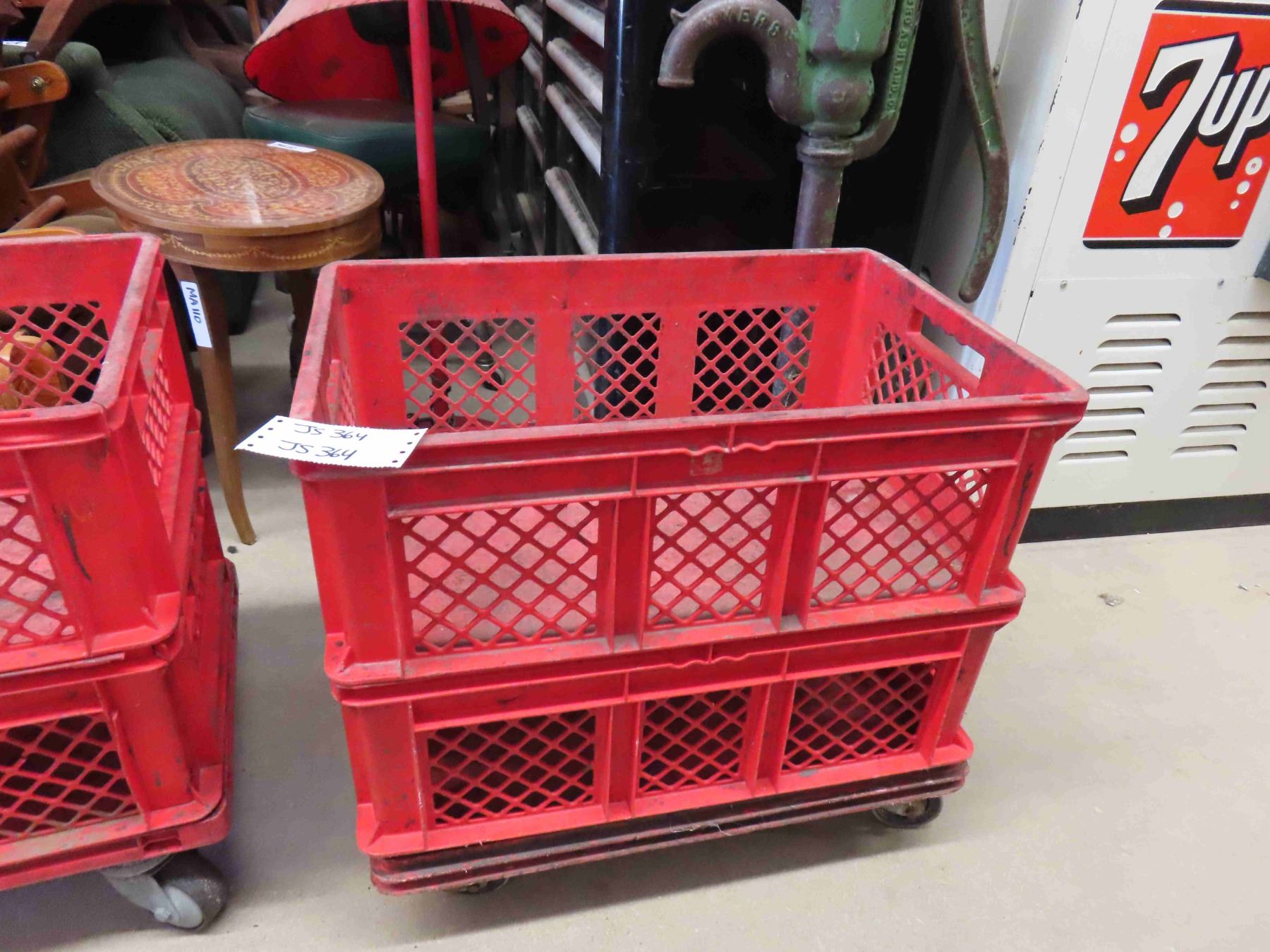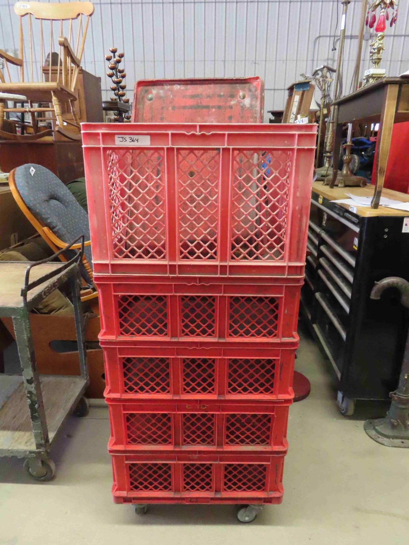3 Rolling Plastic Work Carts 15.5" x 22"x 23.5" - Stackable - 3 Bases, 5 Crates