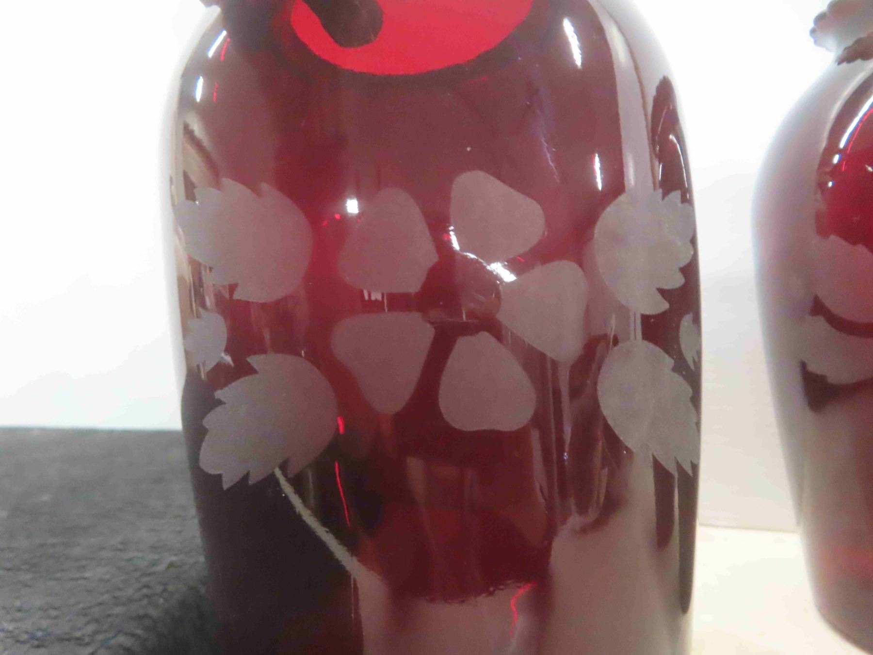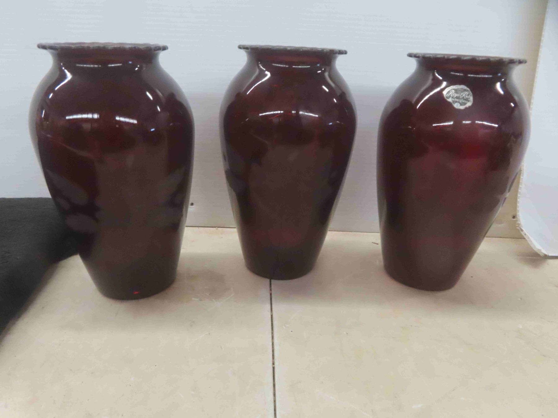 3 Ruby Glass Vases