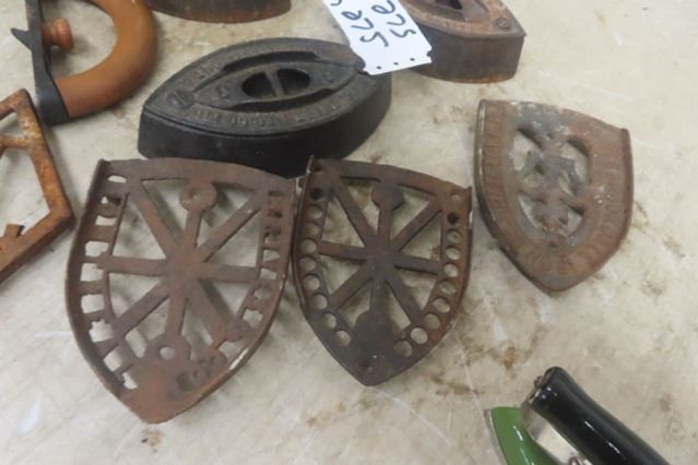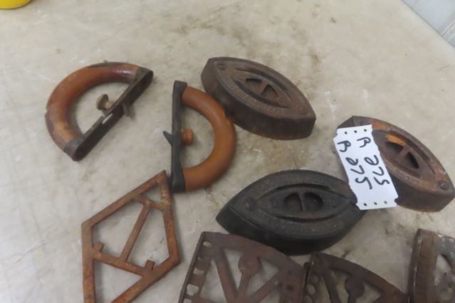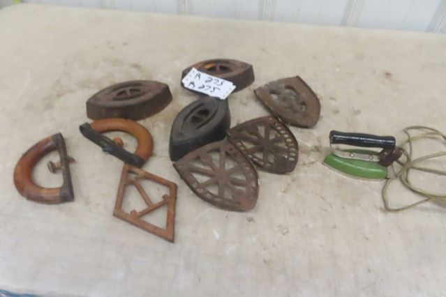 3 Sad Irons, 4 Rests, 2 Handles & Rep 10V Electric Iron