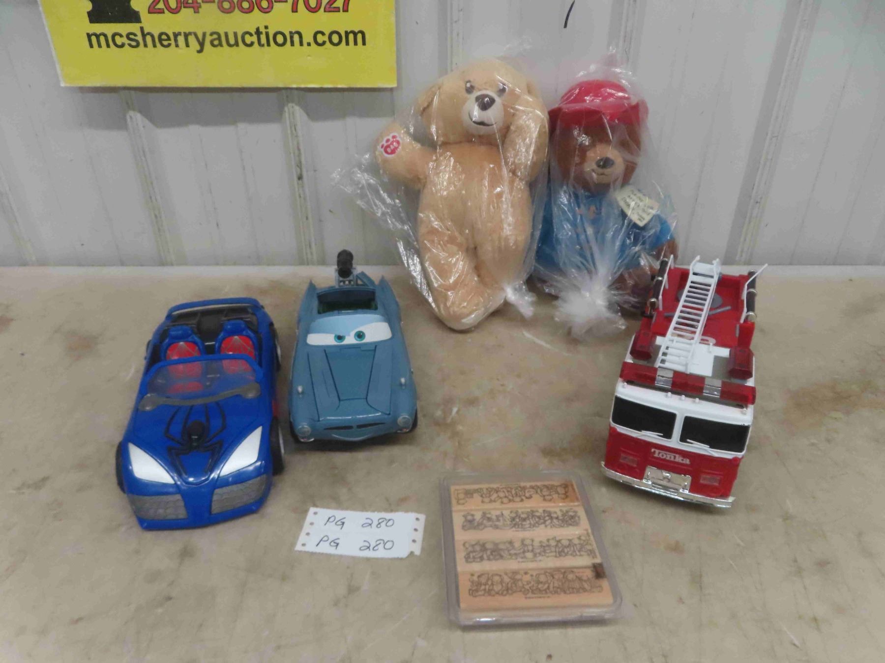 3 Sand Box/ Beach Toys + 2 Plus Toys ; Paddington Bear, Teddy Bear & Stamp Up Rubber Stamp Set - unused ' Teddy Friends