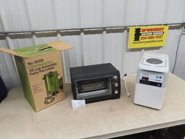 3 Small K Appliances -1) New Old Stock 36 Cup Coffee Urn in 1970's Green 1) B & D Breadmaker 1) B & D TOaster
