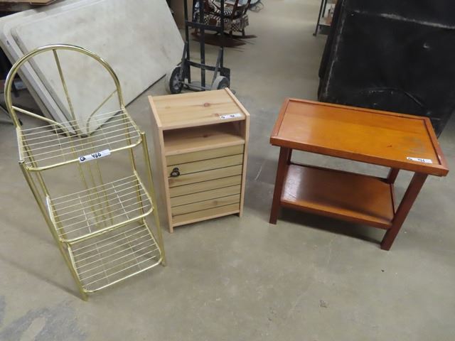 3 Stands 1) Wood 21"x 26" x 17" 1) 24"H 15"W11"D & 1) Brass 36"H 14"W 11" D