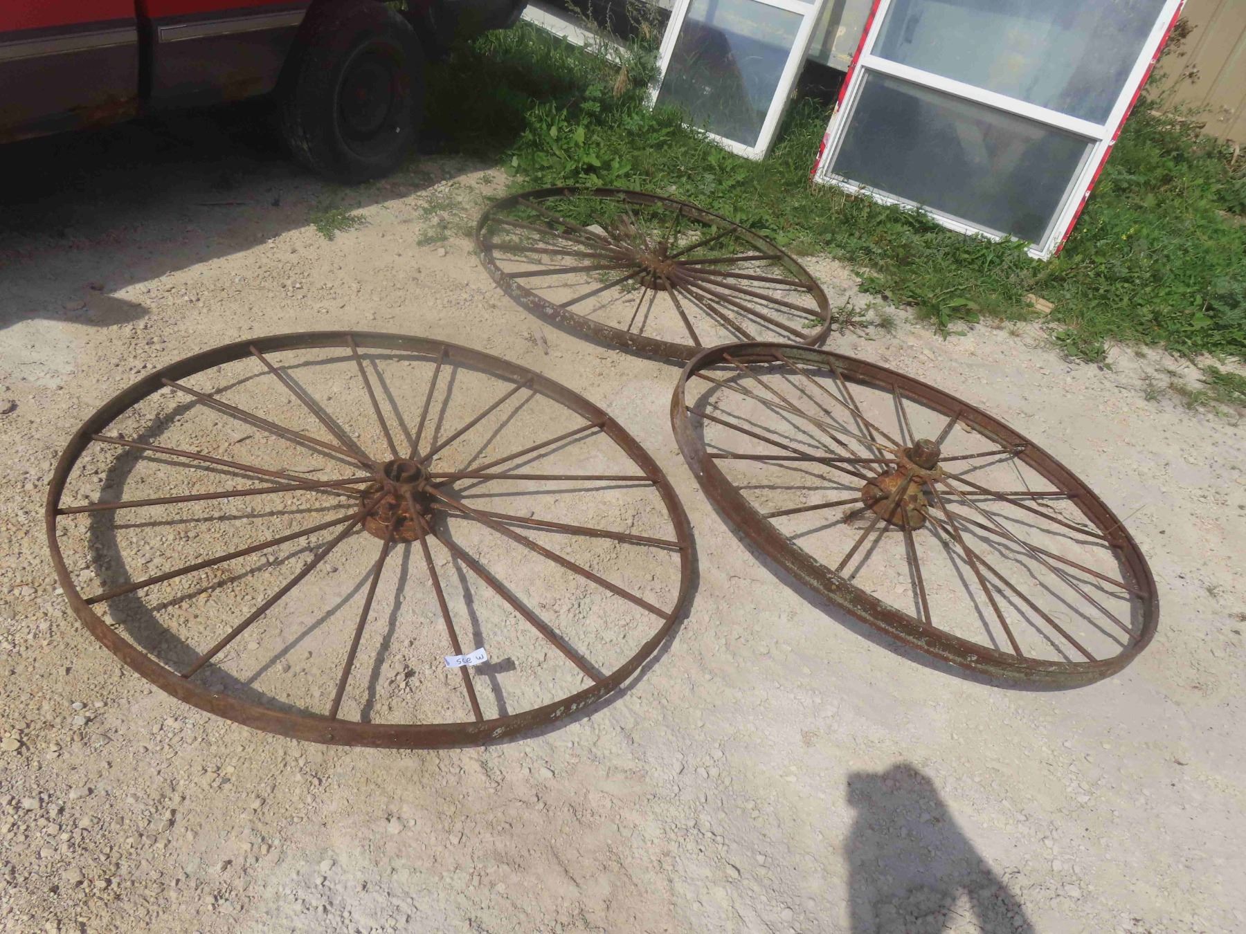 3 Steel Wagon Wheels, 50''-54'' Diameters.