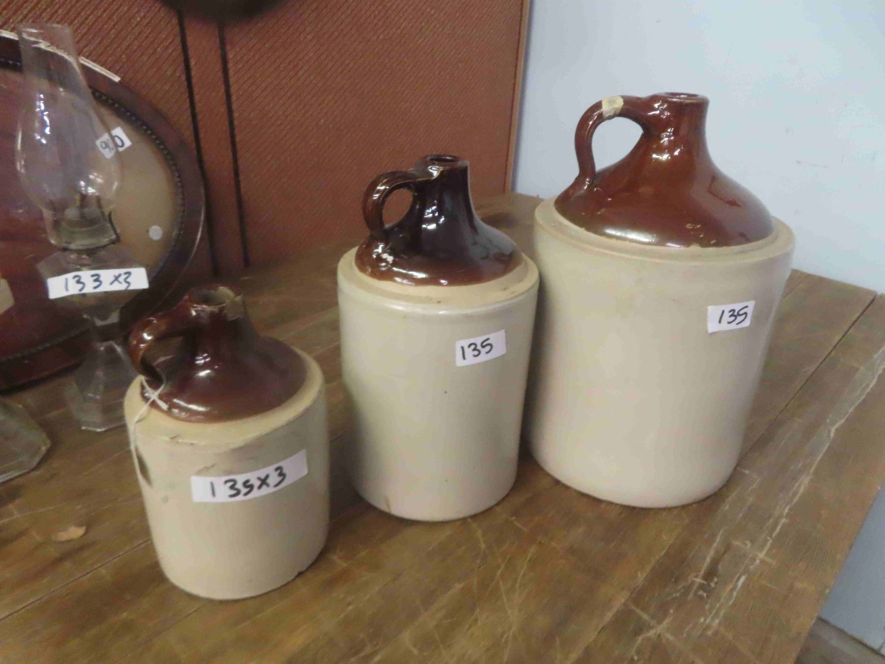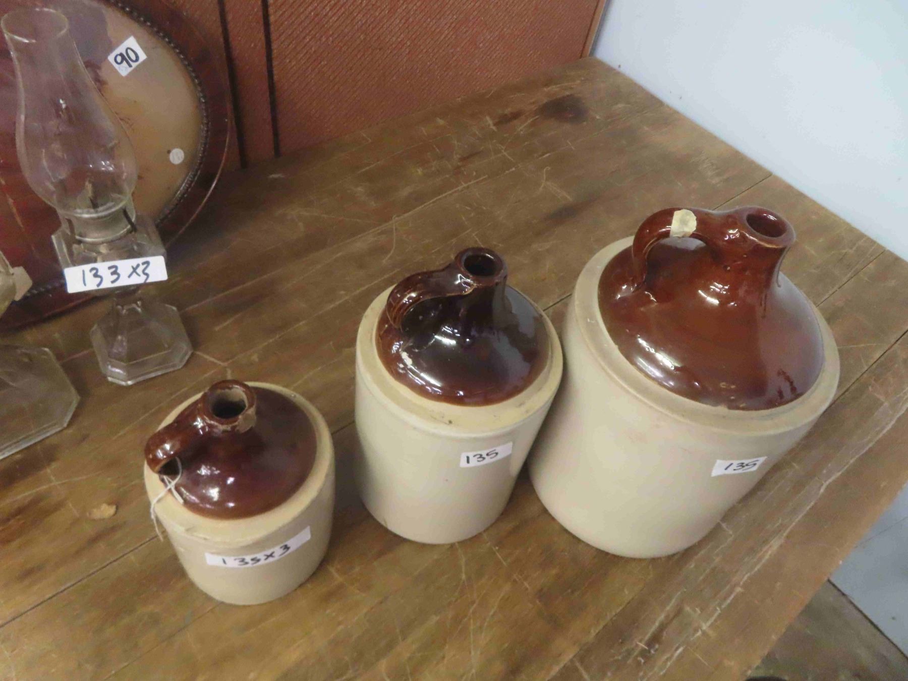 3 Stoneware Jugs 2 Gal, 1 Gal, 1/2 Gal