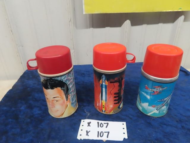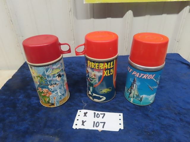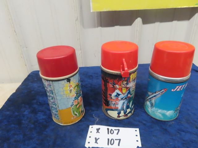 3 Thermos' 1) Fireball XL5 1964 , 1) 1966 Get Smart & 1) 1957 Jet Patrol - Made by Aladdin