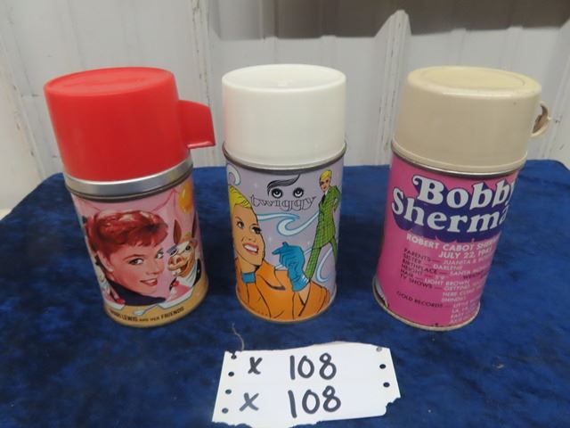 3 Thermos' 1) Shari Lewis & Friends 1963 1) Twiggy - Made By Aladdin 1967 & Thermos Bobby Sherman 1972