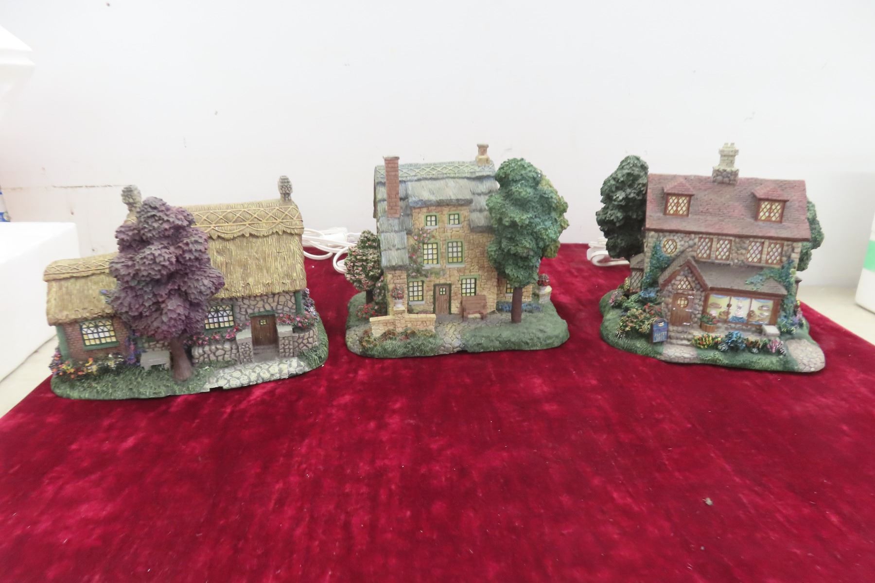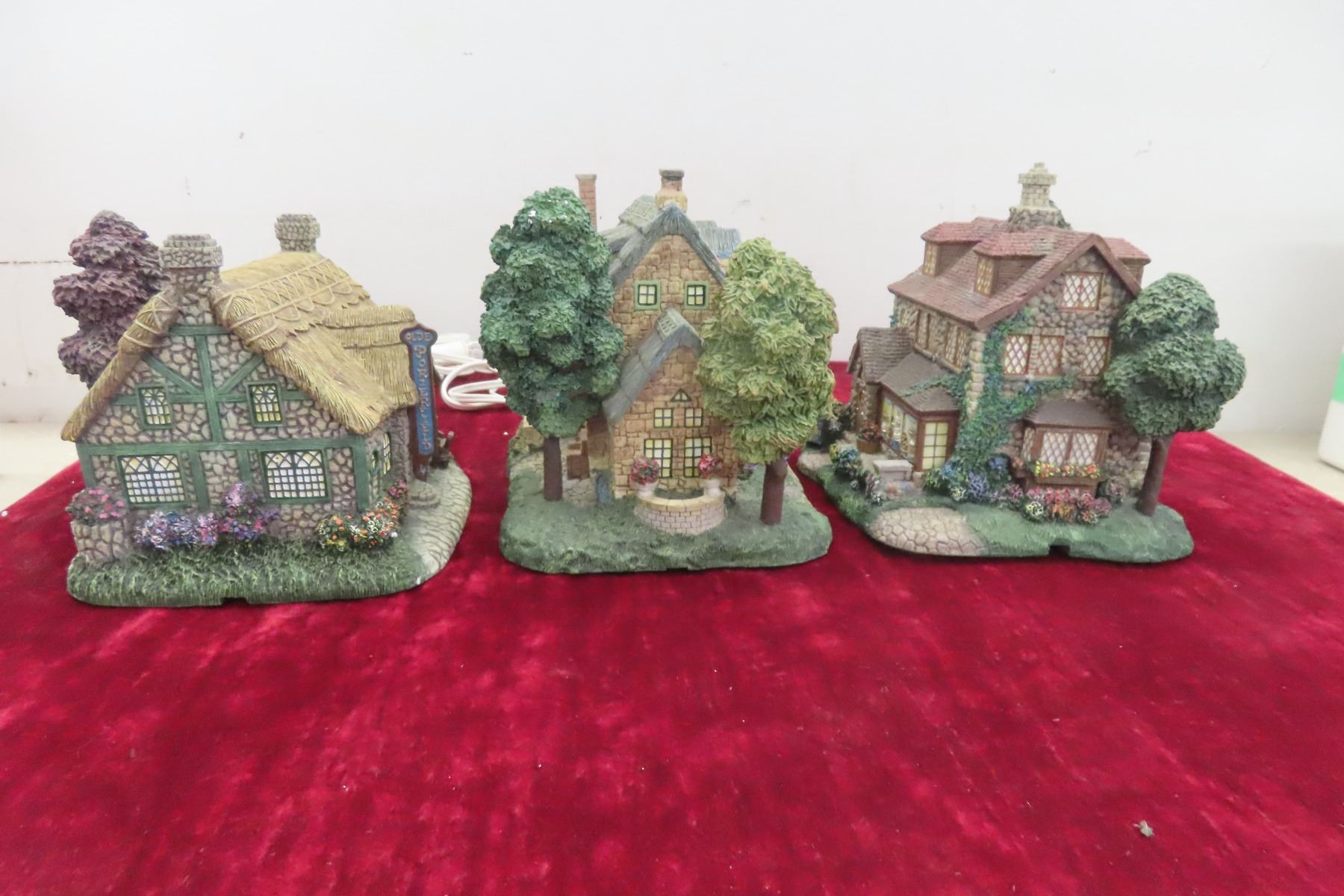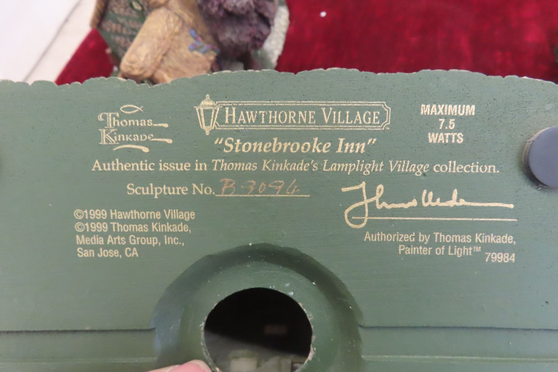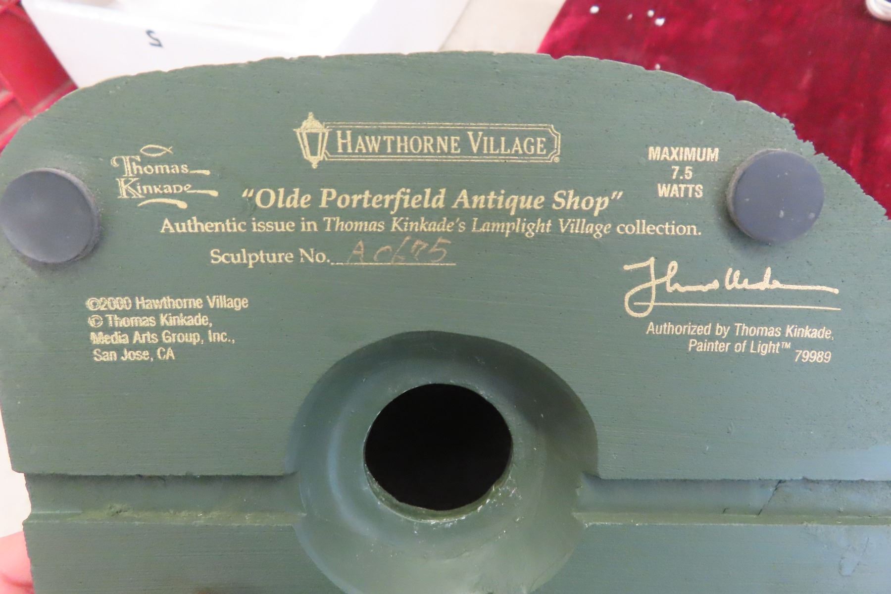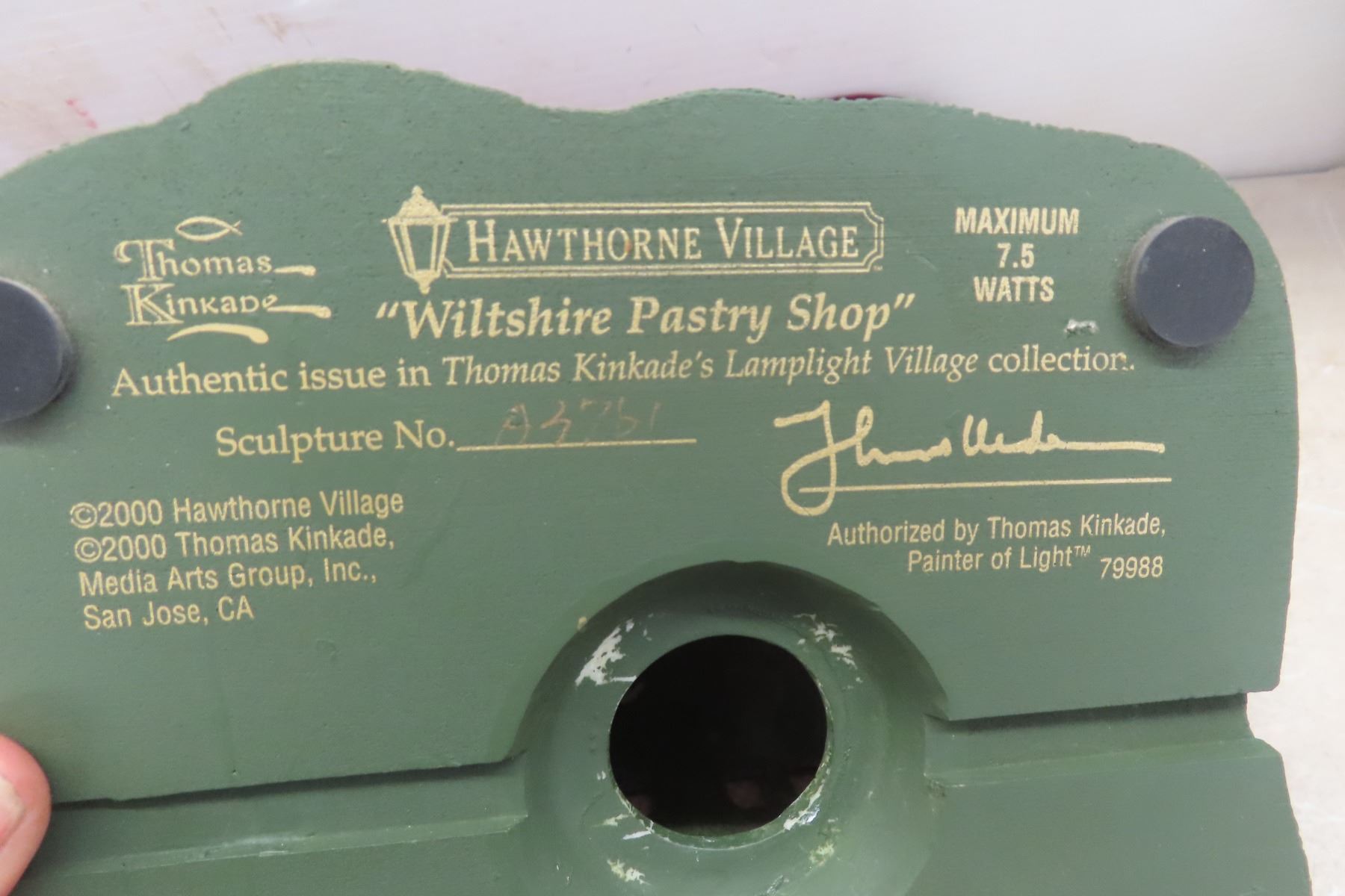 (3) Thomas Kinkade Lamplight Village Collection, Olde Porterfield Antique Shop 2000, Wiltshire Pastry Shop 2000 + Stonework Inn 1999