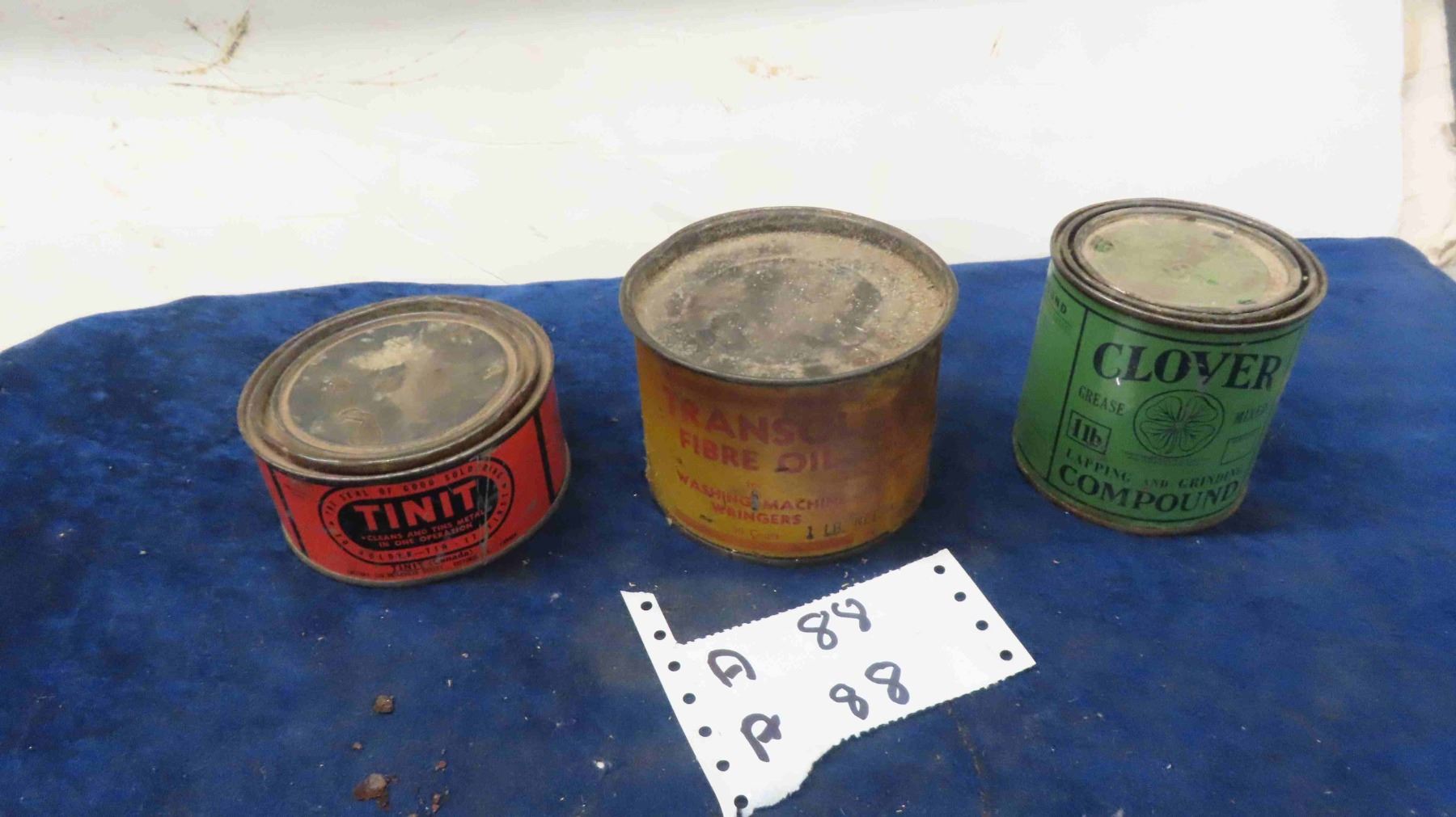 3 Tins ; Tinit Soldering 13 oz + Transol Fibre Oil 1 lb Tin + Clover Grinding Compound 1lb