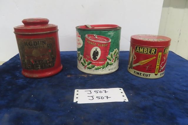 3 Tobacco Tins ; R.G. Dun , Prince Albert Paper Label Gift Tin, Amber Fine Cut