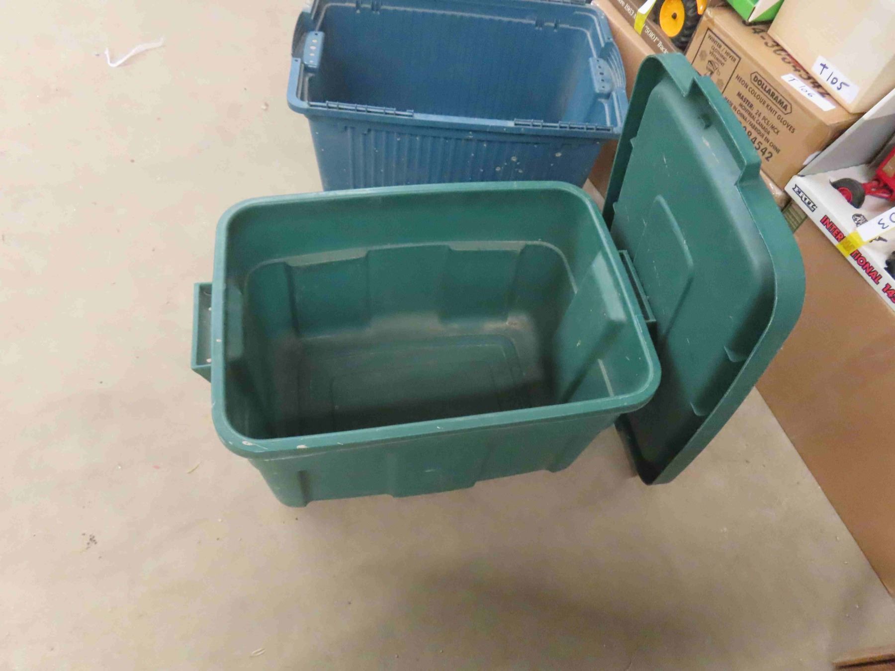 3 Totes - only 2 Lids ; 13" x 16.5" x 20" + 13" x 13" x 18" + 12" X 13" x 19"