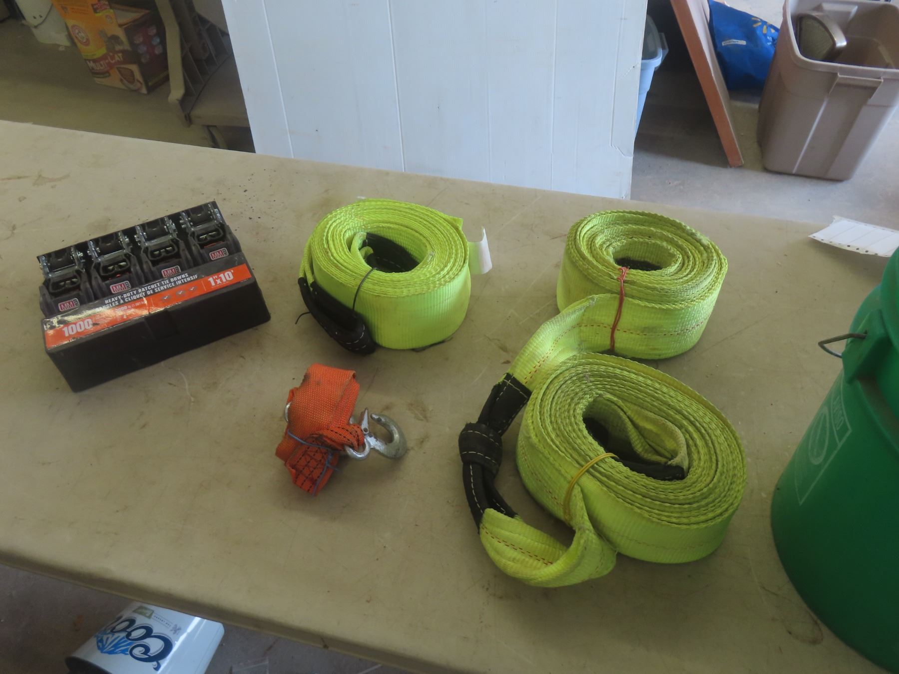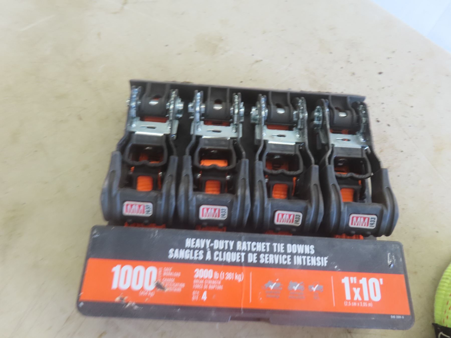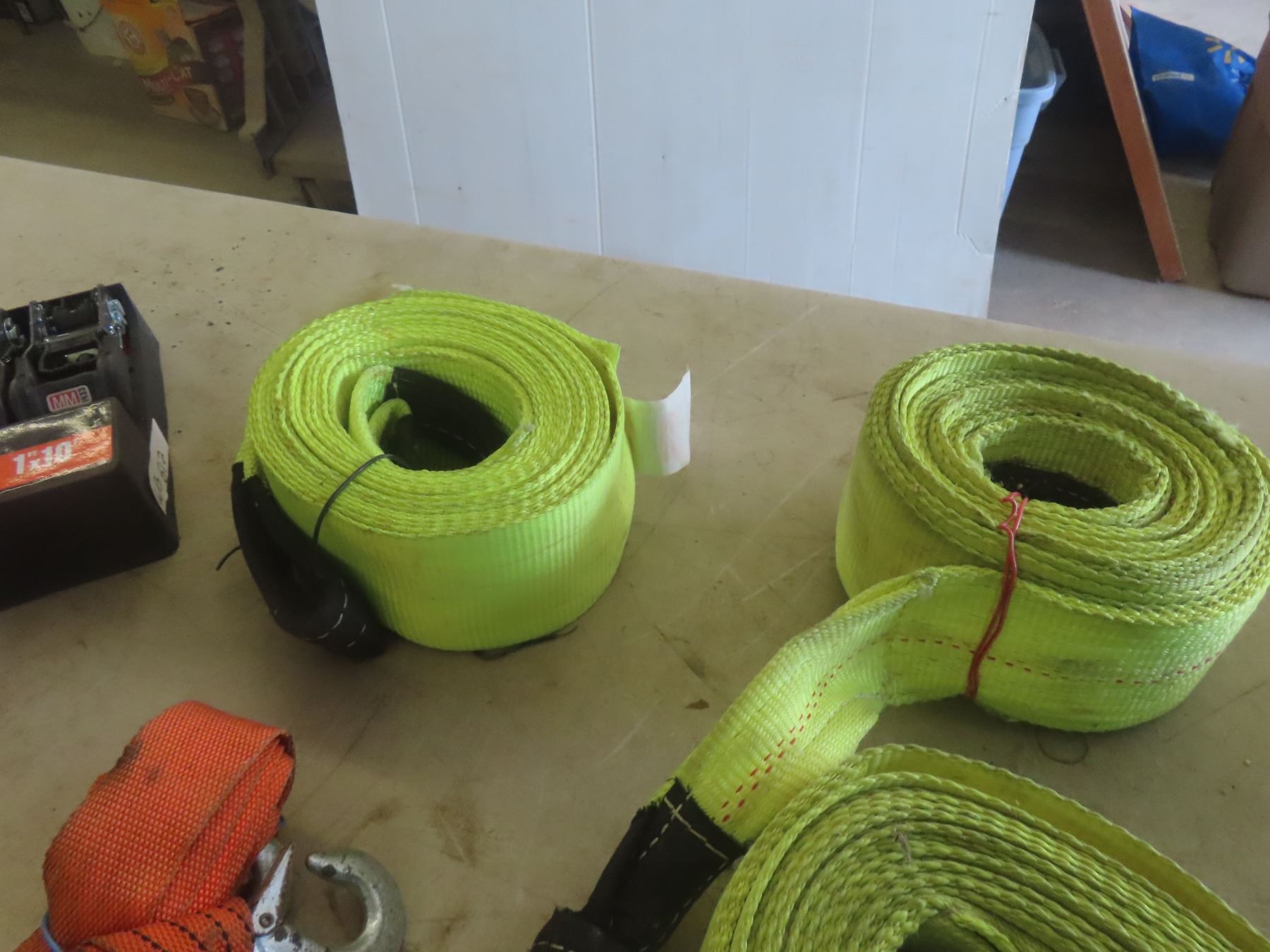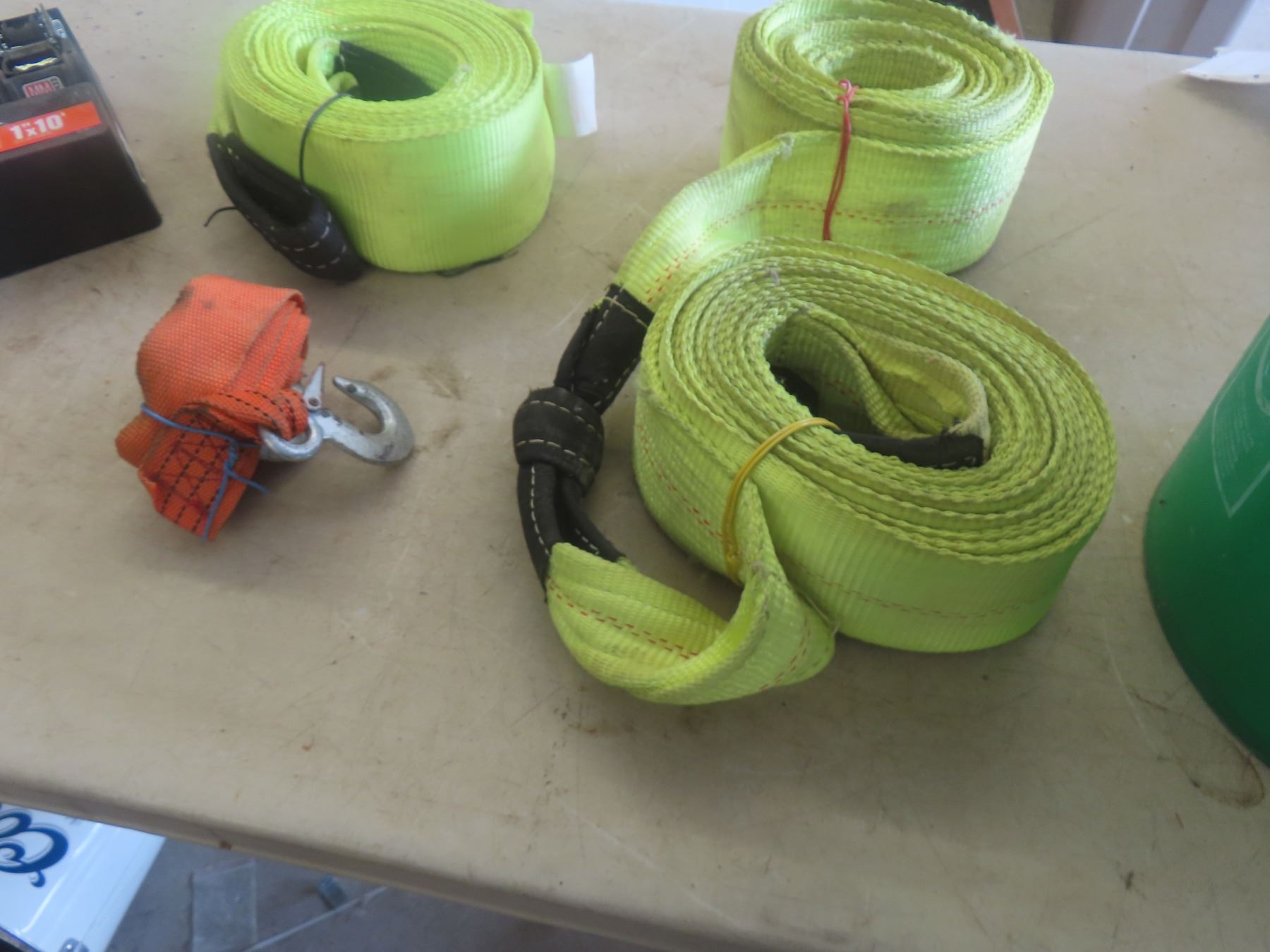 3 Tow Straps + 4 New Load Ratchet Tie Downs