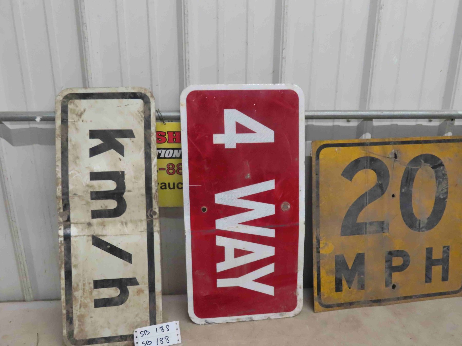 3 Traffic Signs : 4 Way 12'' x 24'' , 20 MPH 18'' x 18'' , Km/h 9'' x 24''