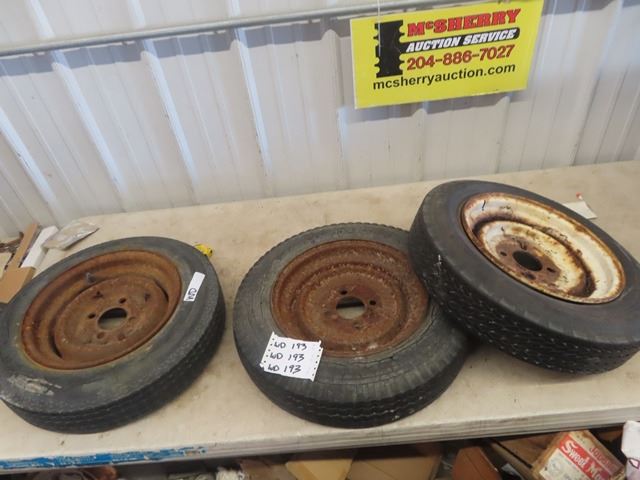 3 Trailer Tires with Rims 4.8 - 12 4 Hole Rim Poor Condition Rubber
