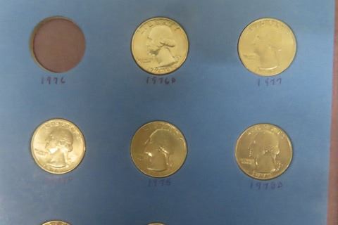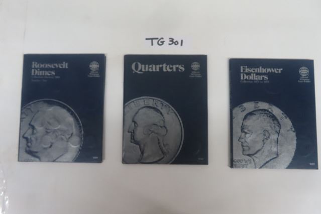 3 US Coin Books - 10 Cent, 25 Cent, $1.00 - Incomplete , See Photos for Content