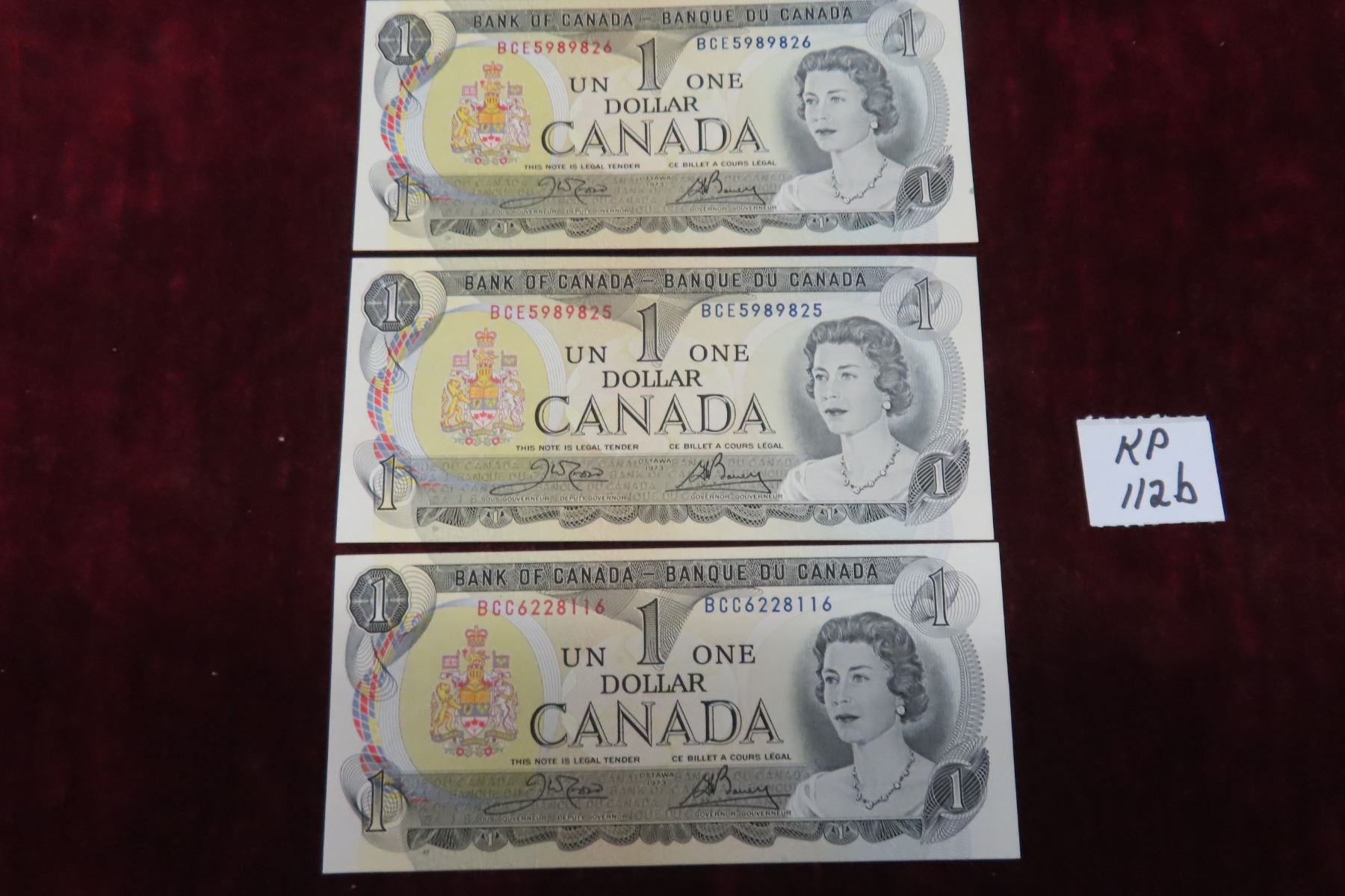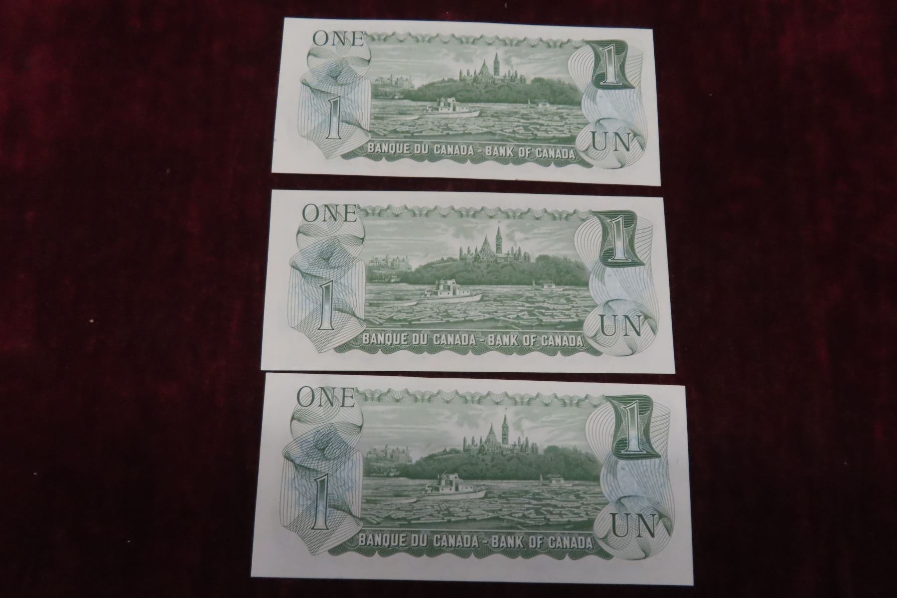 3 Uncirculated 1973 Canada $1 Bills