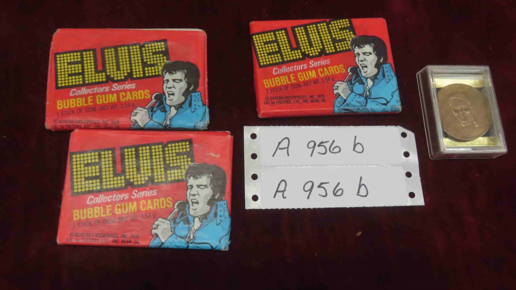 3 Unopened Packages Elvis Collectors Series Bubble Gum Cards , Official Commemorative Coin