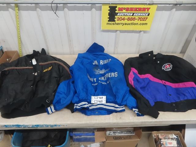 3 Used Snowmobile Jackets: Ski- Doo Sz 38, Jim River Drift Skipper Sz L, Polaris Club 1996 Sz XXL