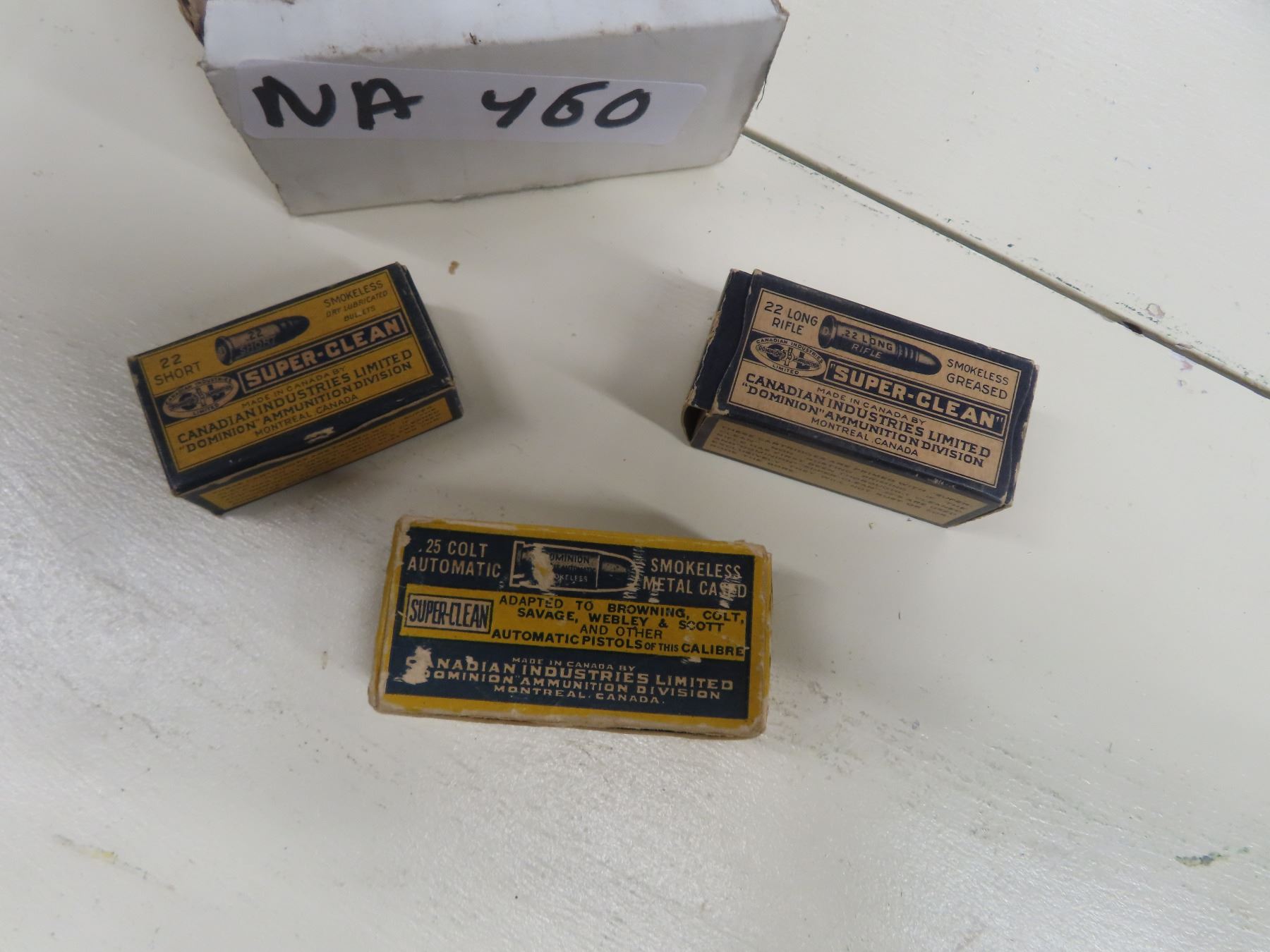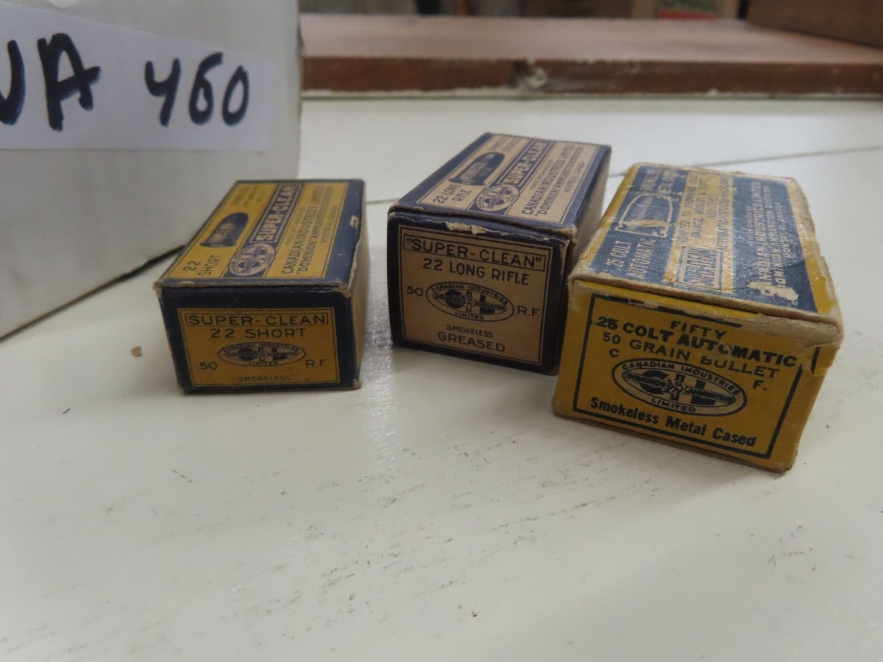 3 VIntage Ammo cases- CiL 25 Colt, CiL 22 Long , CiL 22 Short with 150 rounds