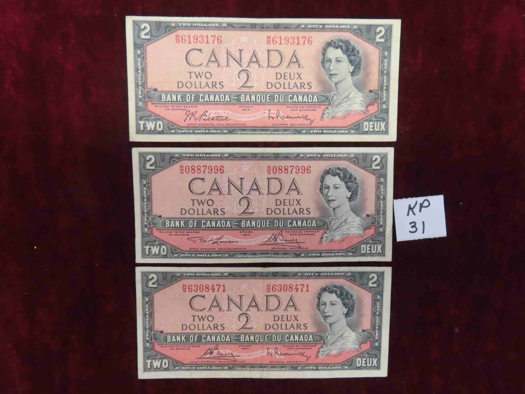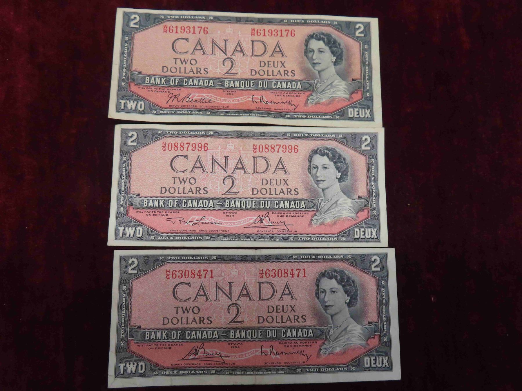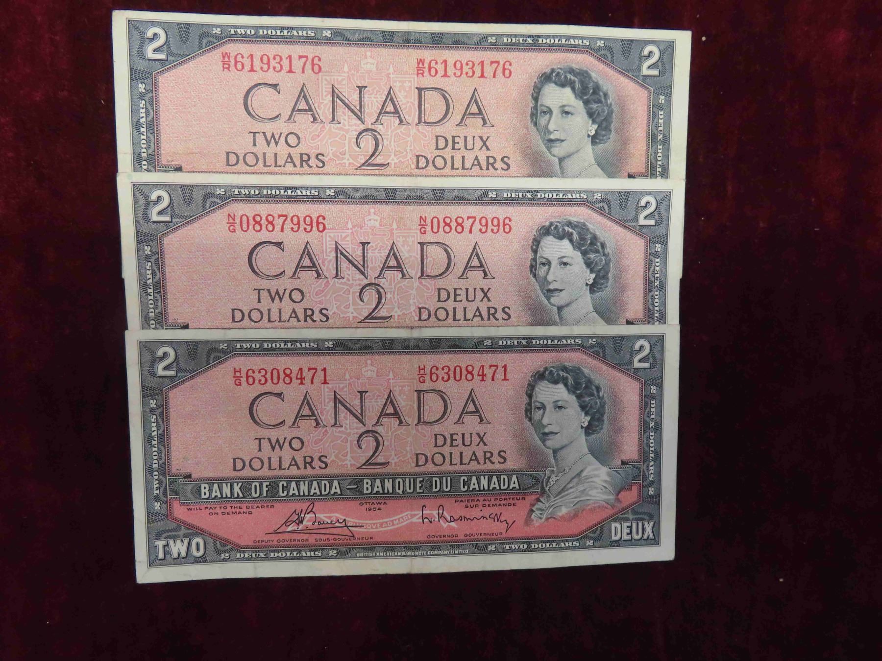 3 Very Nice 1954 $2 Bills
