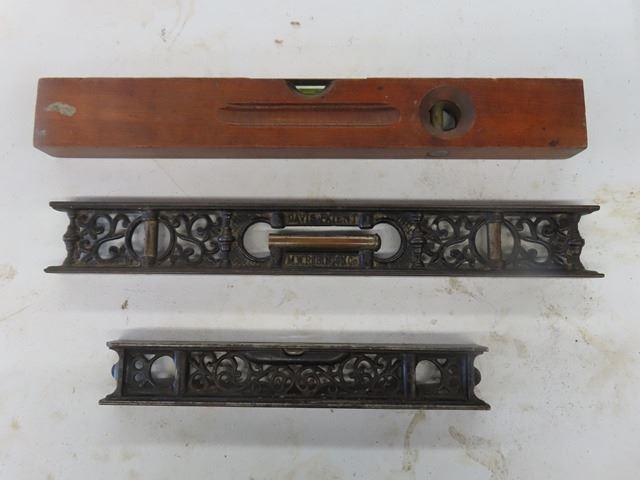 3 Vintage Antique Metal Spirit Levels; Longest is 24” Stanley No. 36 + 2nd longest - 12” Stanley No. 36 Patent 8-4 + 6-23.1896 & Smallest is a Stanley with no obvious number. Patent 6-23-1896.